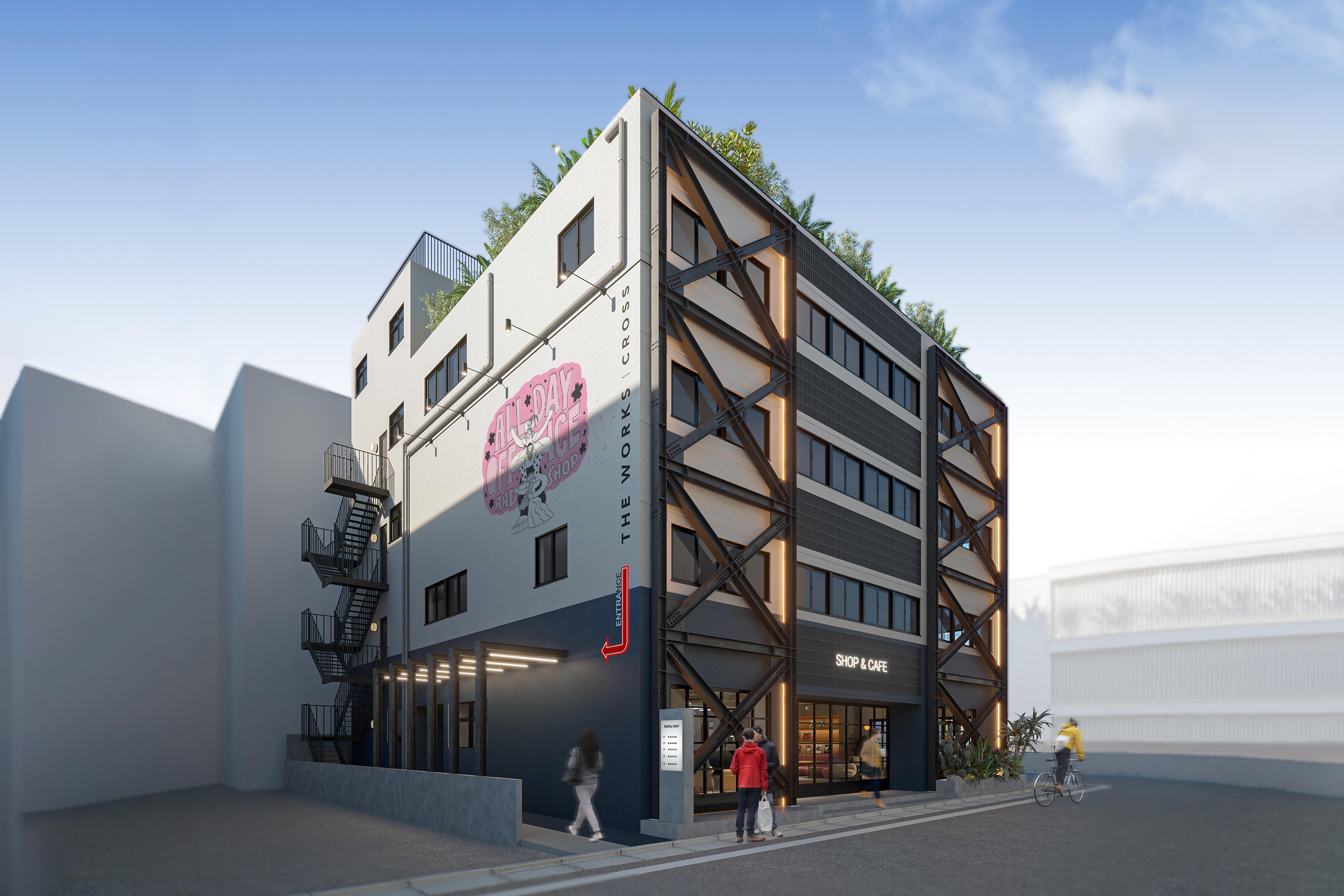 こうしたエリア一体開発は、渋谷、中目黒・池尻エリアでも展開をしており、中目黒・池尻エリアでは2014年にオープンしたクリエイティブオフィス、レストラン、コーヒースタンドからなる複合施設「THE WORKS」の第3弾シリーズとしてTHE WORKS CROSSを3月にオープン。(中目黒・池尻エリア8棟目)