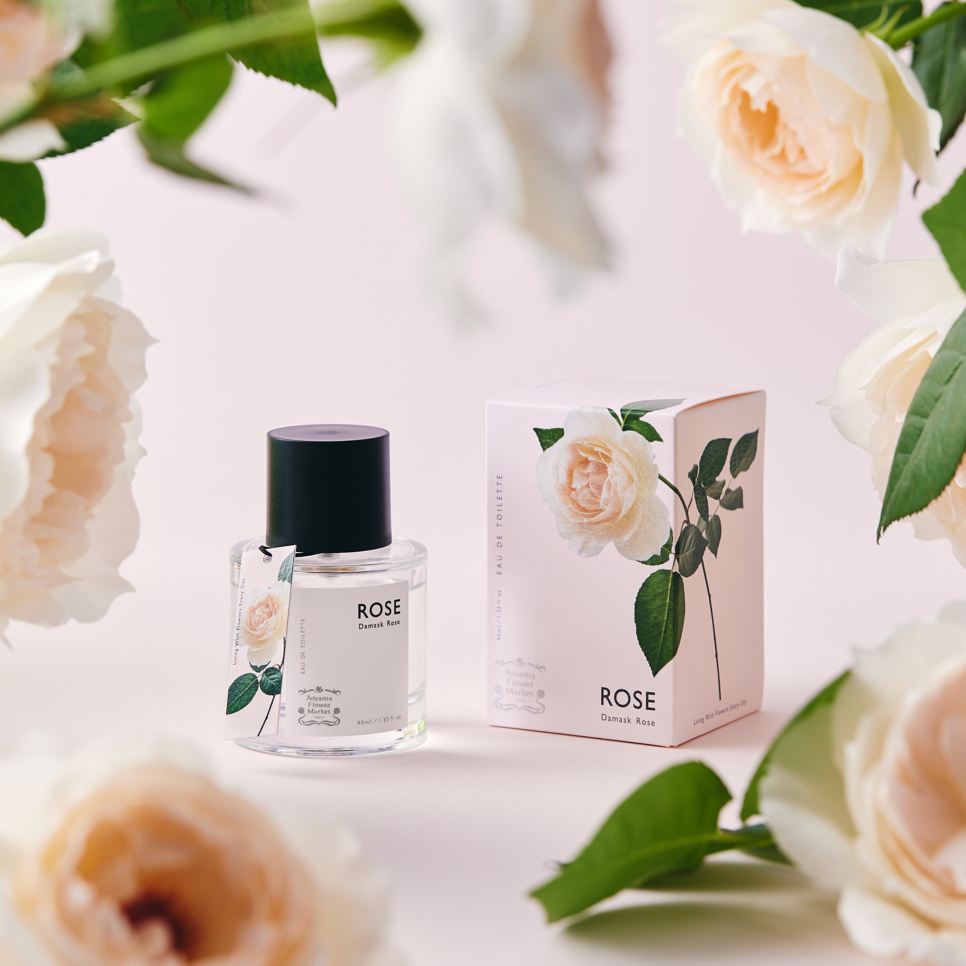 フローリストが慣れ親しんでいる、「咲き誇るバラそのものの香り」にこだわりました。透明感があるローズのフレグランスは、古典的なバラの香りであるダマスクローズと、青山フラワーマーケットのオリジナルローズ「NUMBER5」から抽出したエキスをブレンドしました。