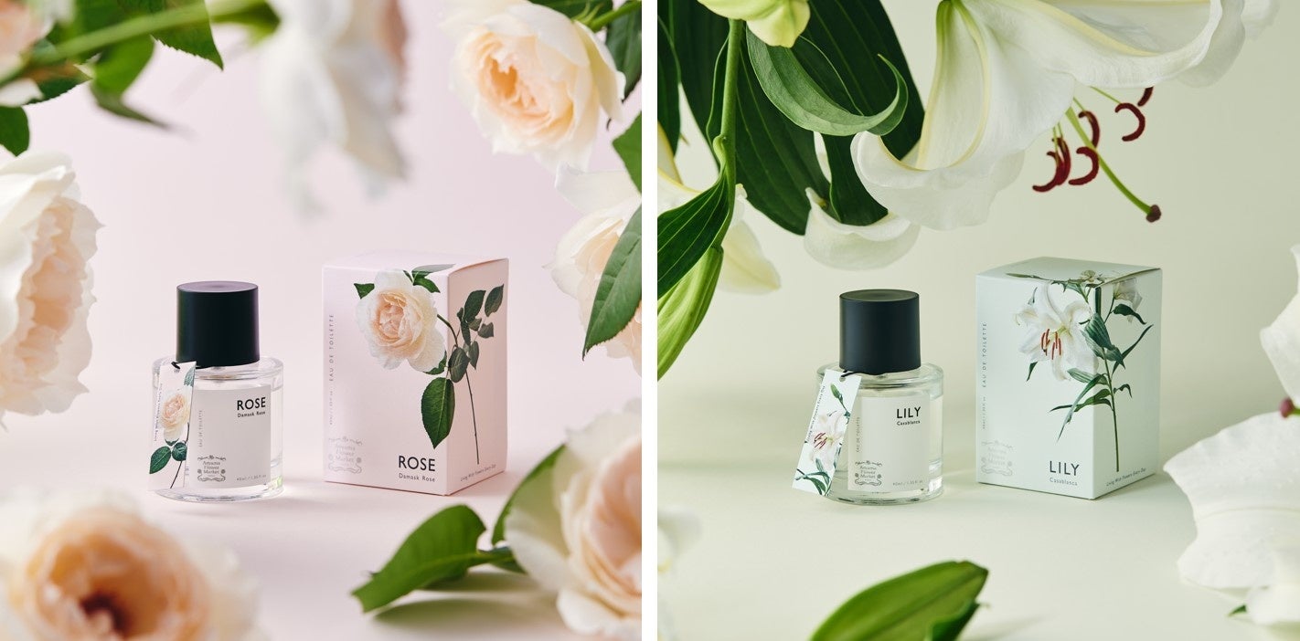 青山フラワーマーケットの「花屋が作ったフレグランス」がリニューアル!フレッシュな花びらを摘み取って抽出したエキスを使用。芳醇な植物の香りに包まれる「ローズ」と「リリー」の2種を販売開始