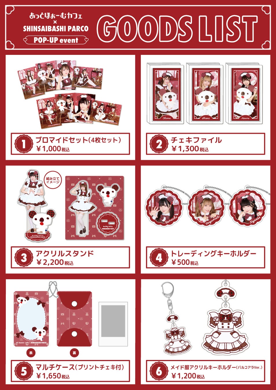 内容:あっとほぉーむカフェのスペシャルな展示(無料)/PARCO限定コラボグッズ販売/あっとほぉーむカフェ公式メイド服着用体験/「パルコアラ」柄の限定リボンを着用したメイドとのチェキ撮影会