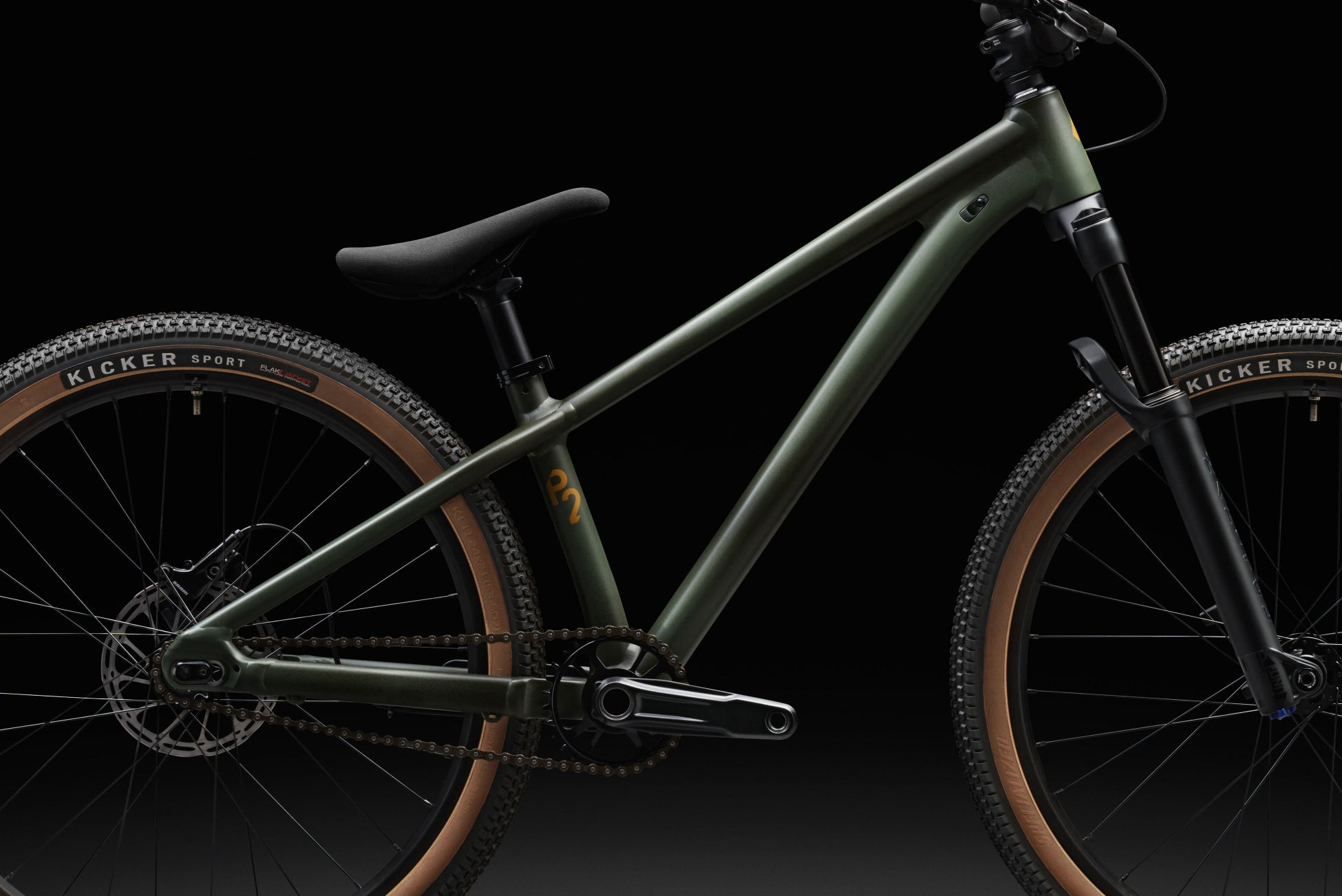 新しいP.Seriesに採用されたのは、こちらも新発売の2.1インチのKicker Sportsタイヤ。転がりは軽く、トレッドは控えめながら、ノブの中にノブを重ねたBlock-In-Blockデザインを採用したトレッドパターンが路面をしっかりと捉えます。Kicker Sportはワイヤービード仕様で、スケートパークからダートジャンプ、固くしまったオフロードまで幅広く適応します。また、同時発売のKicker Control T5は、ダンピング性能に優れ、転がりの速いT5コンパウンドと折りたためるビードを採用。パフォーマンスを重視したタイヤです。