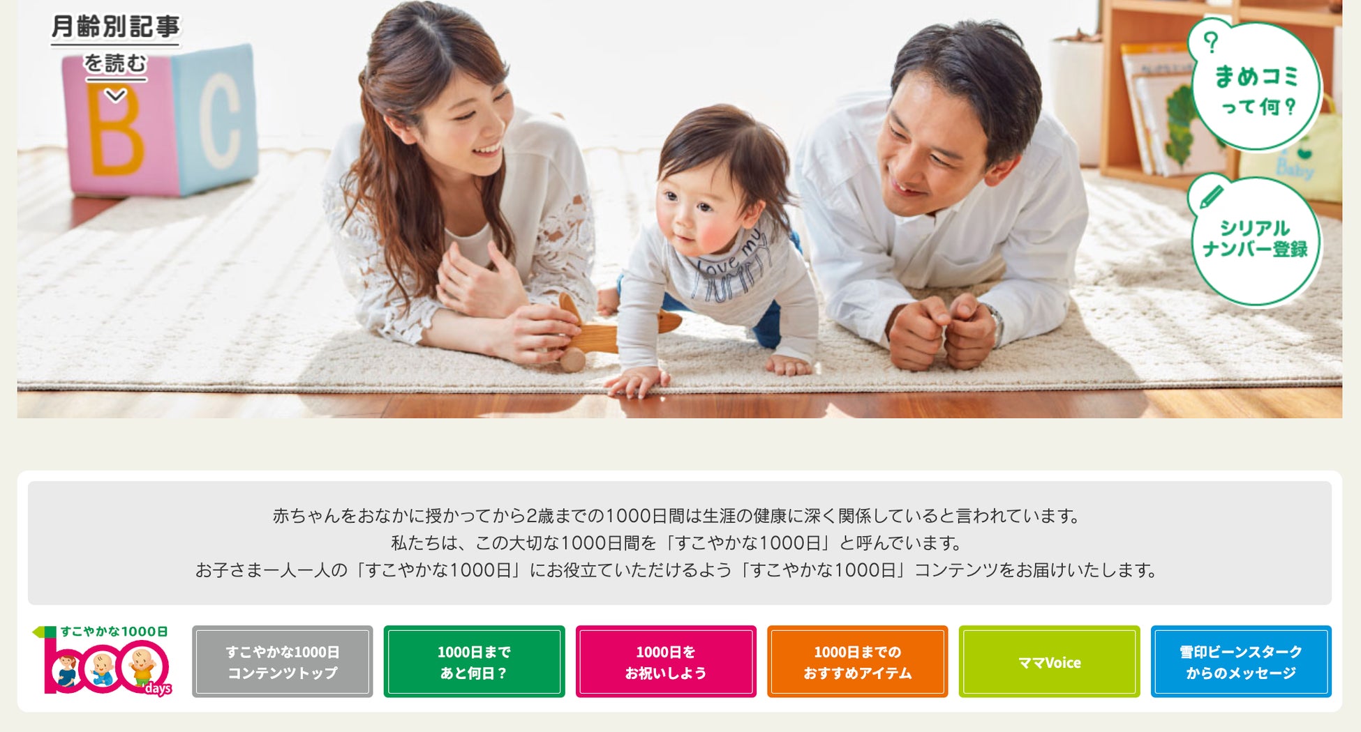 「お得!」「便利!」「安心!」をお届けする無料会員サイトで、楽しい育児サポート情報と、専門の栄養士による育児相談窓口で、赤ちゃんとの素敵な暮らしを応援します。特典だけでなく妊娠・育児情報や専属の栄養士がサポートするまめコミ相談室もご案内しています。