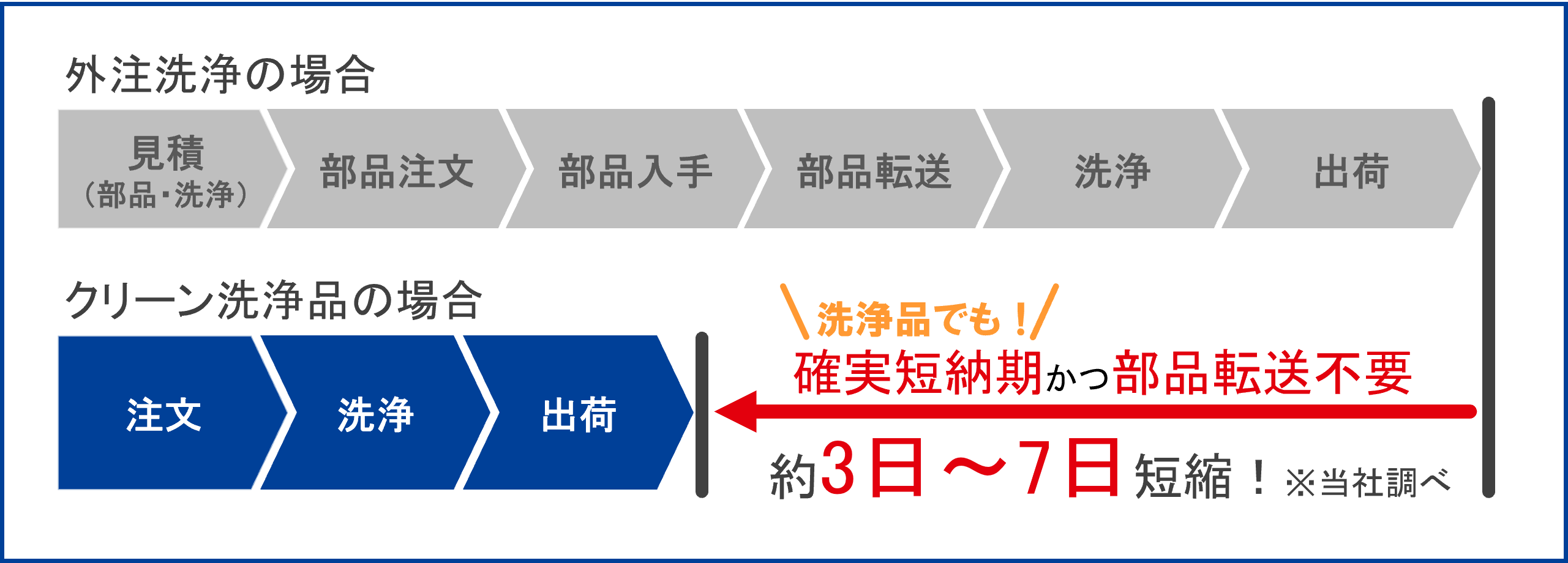 外部での洗浄に比べ、ミスミなら3日~7日短縮。