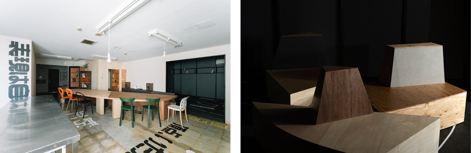 居住空間には可動式家具や特徴的なグラフィックを配置。皆で集まって語り合うことも、個々で作業に没頭することも可能です。住人の気分や活動に合わせて、あらゆる「屯(たむろ)い方」を受け止める柔軟な空間設計となっています。