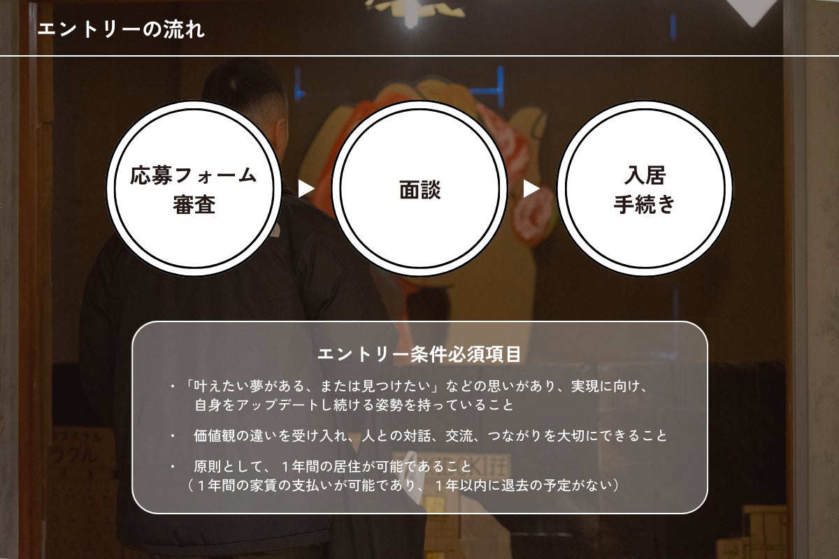 今回は、MAX13名の入居者を募集いたします。自分で叶えたい夢がある、もしくは現在模索中の方。 この場所で、個性豊かな仲間達と「熱中した分だけ、人生が変わる」体験をしてみませんか? たくさんのご応募、お待ちしております。