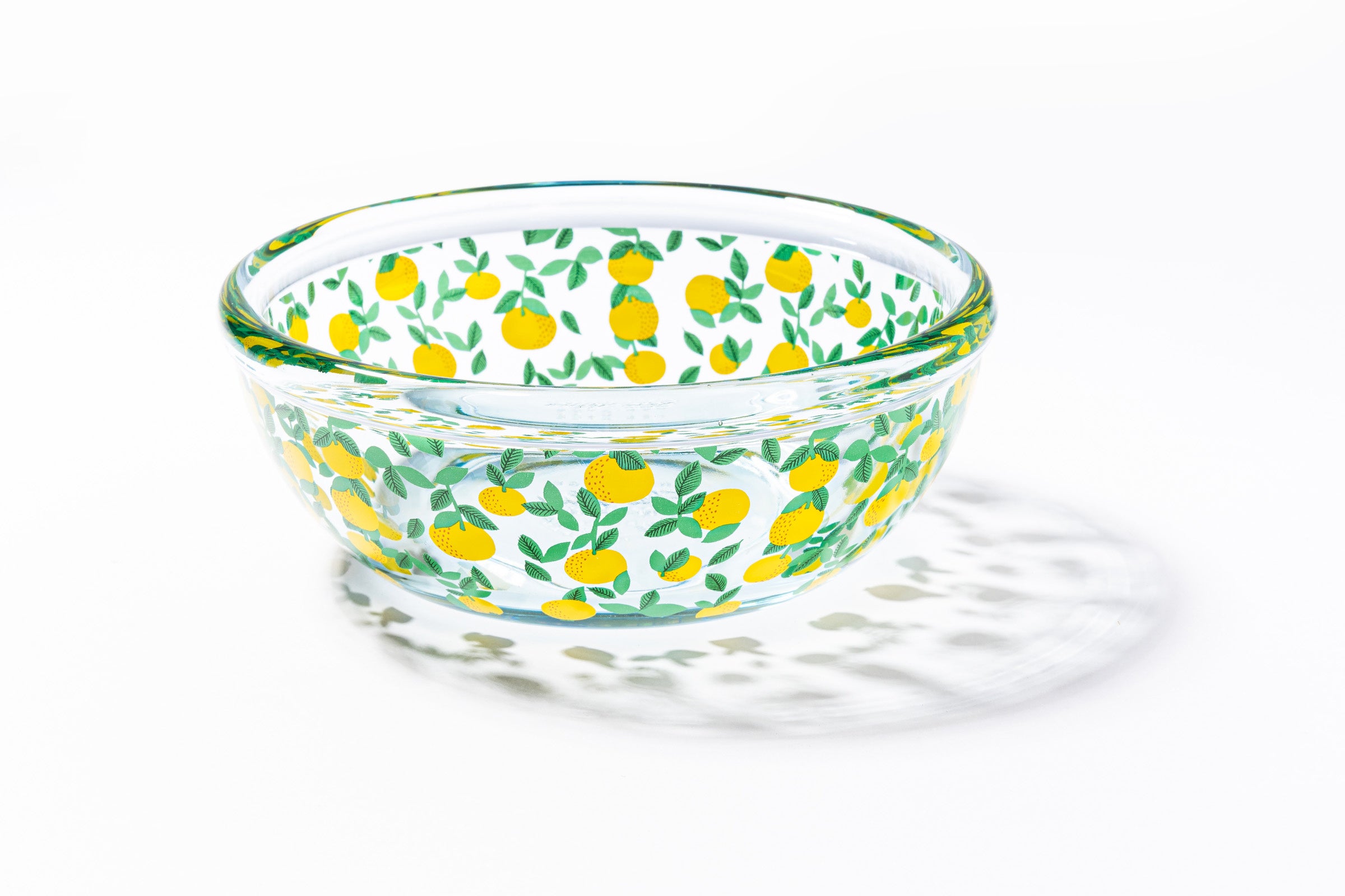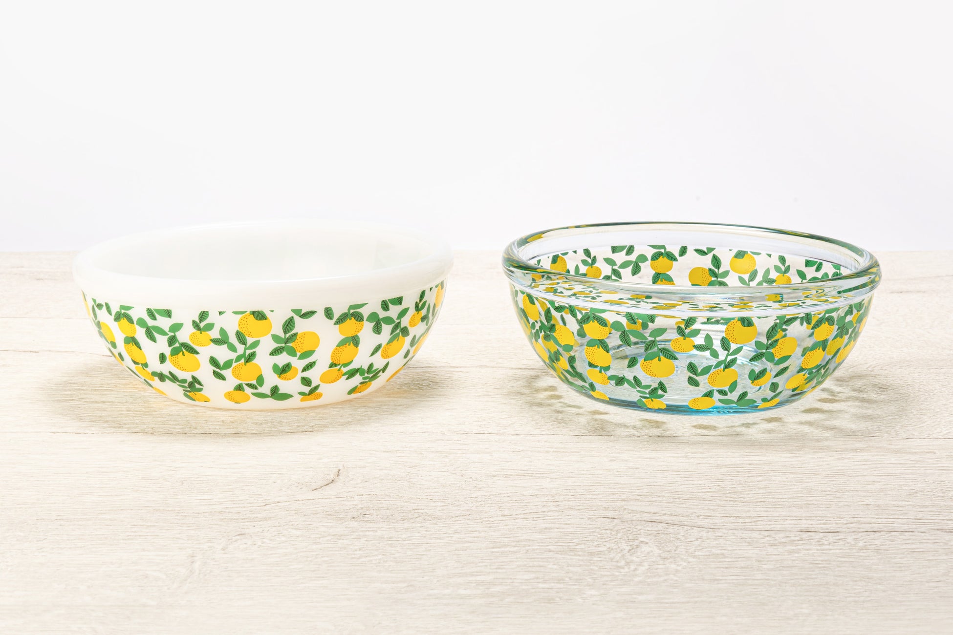 ボンタンアメ®パターンを配した商品化の第1弾は、アメリカ オハイオ生まれのガラス食器ブランド Fire-King(ファイヤーキング)とのコラボレーション。
