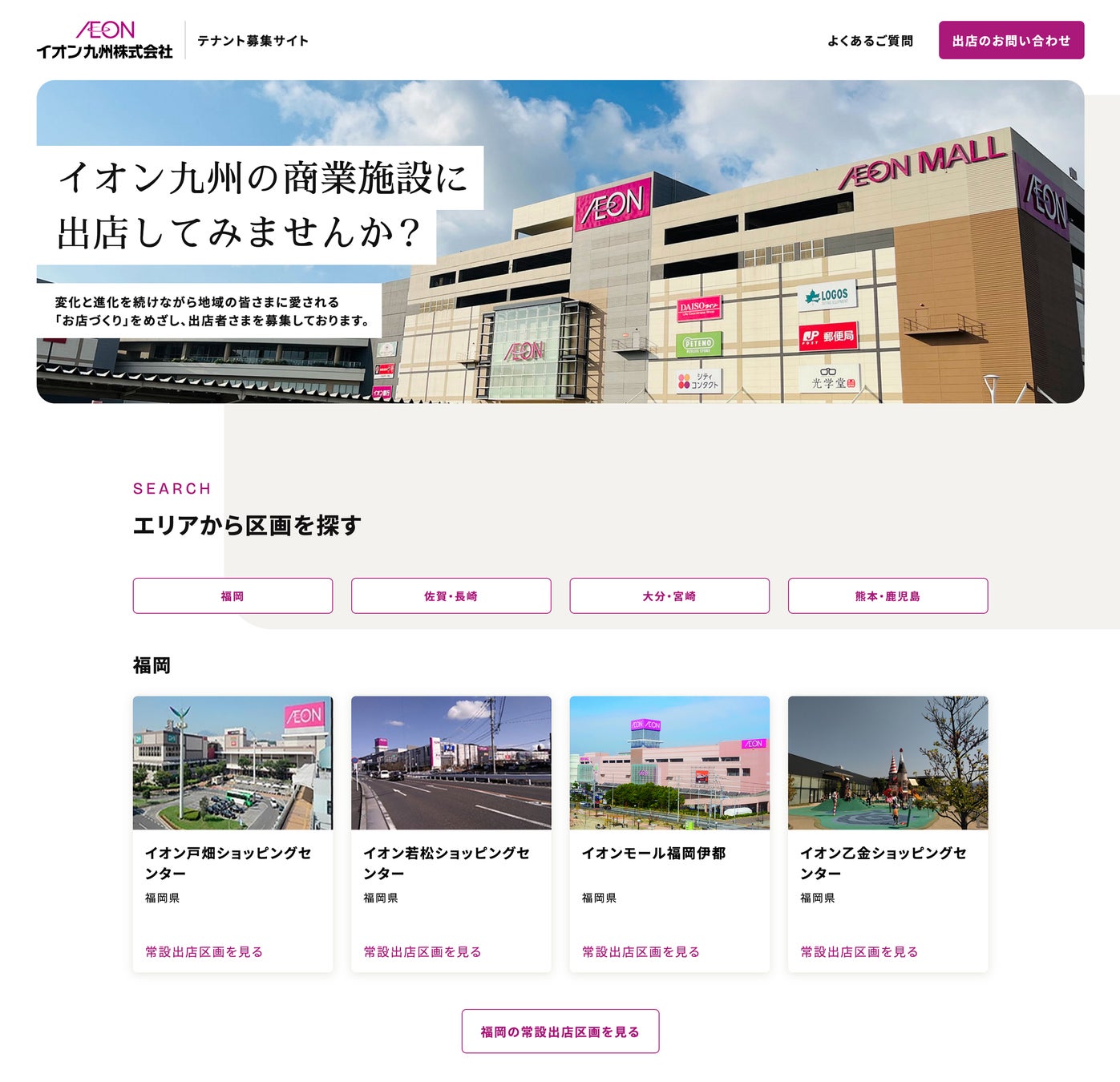 ▼「イオン九州 テナント募集サイト」の画面イメージ