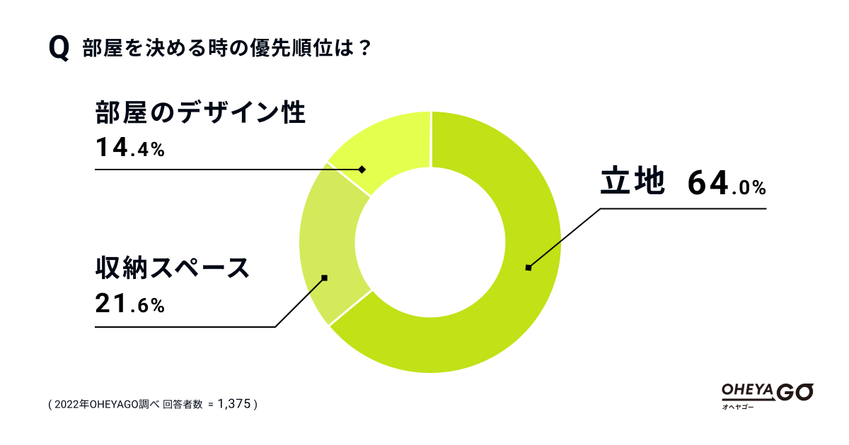 - 家賃が同じ場合、部屋を決める時の優先順位が最も高いのは「立地」