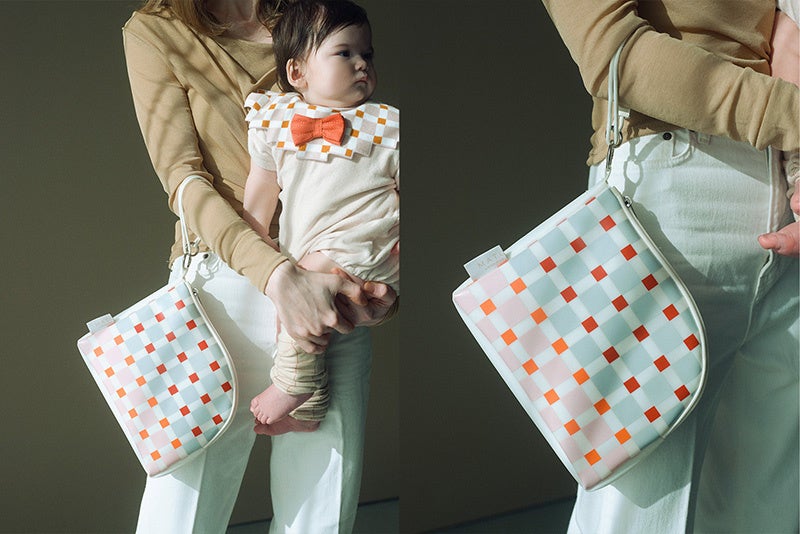 美しいカーブラインで、ファスナーの開閉もスムーズなポーチ。耐久・撥水性に優れたTPU素材で、子育ての日常をユースフルに。
