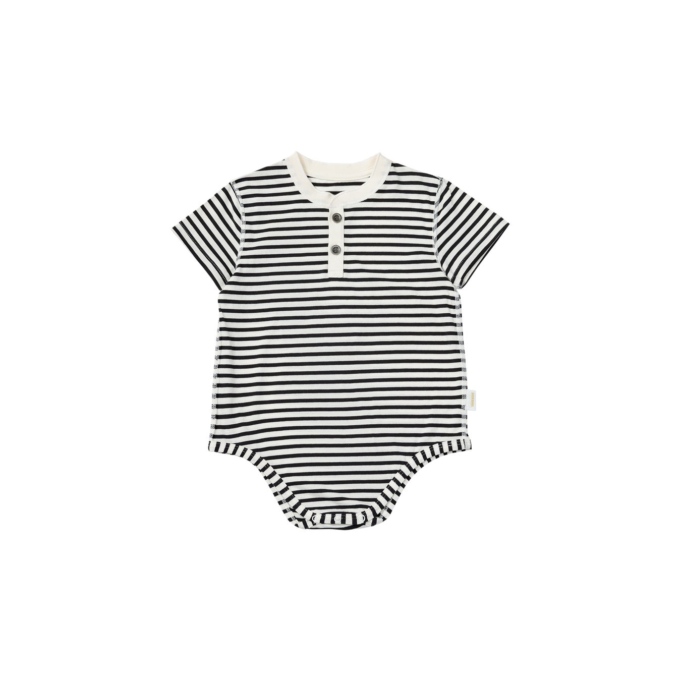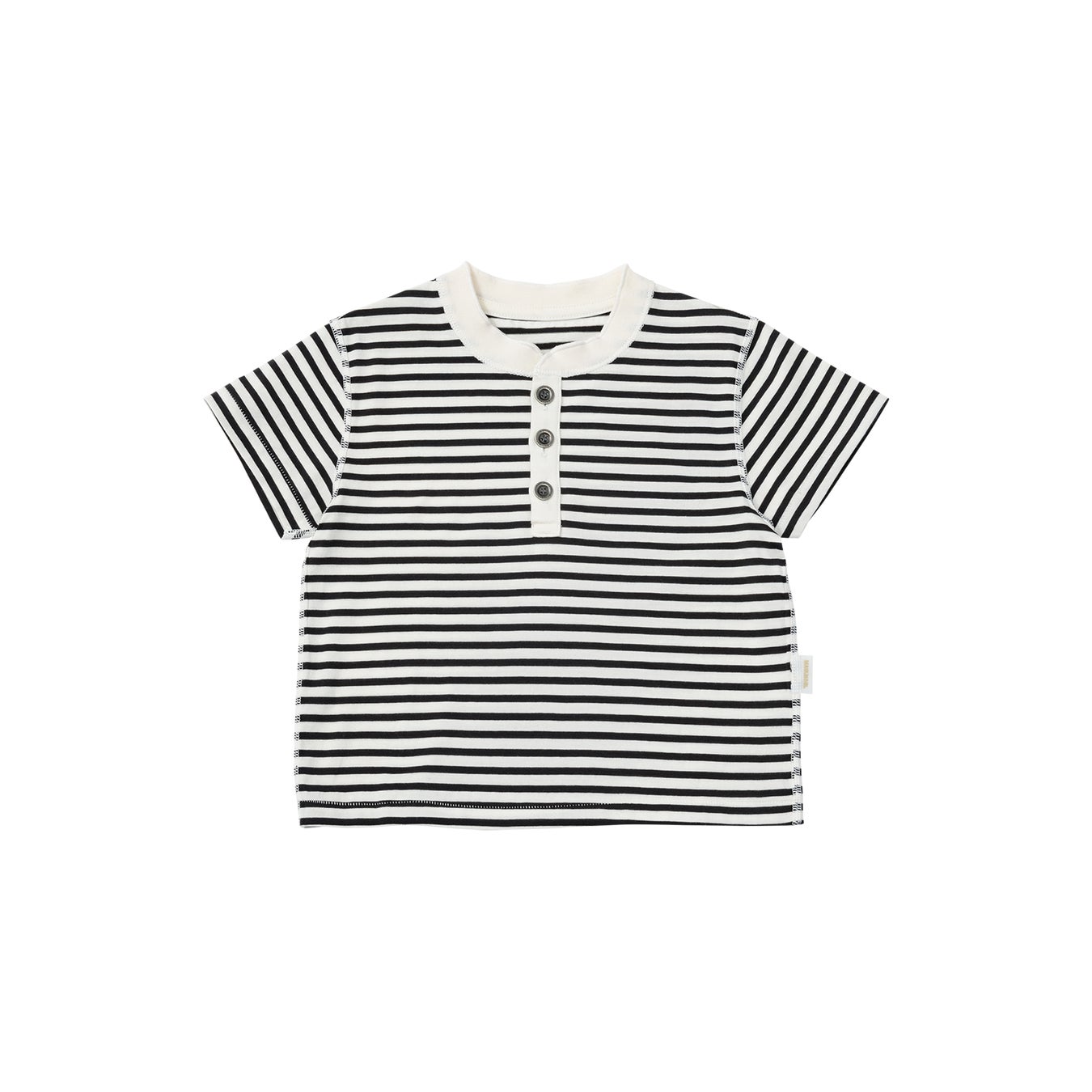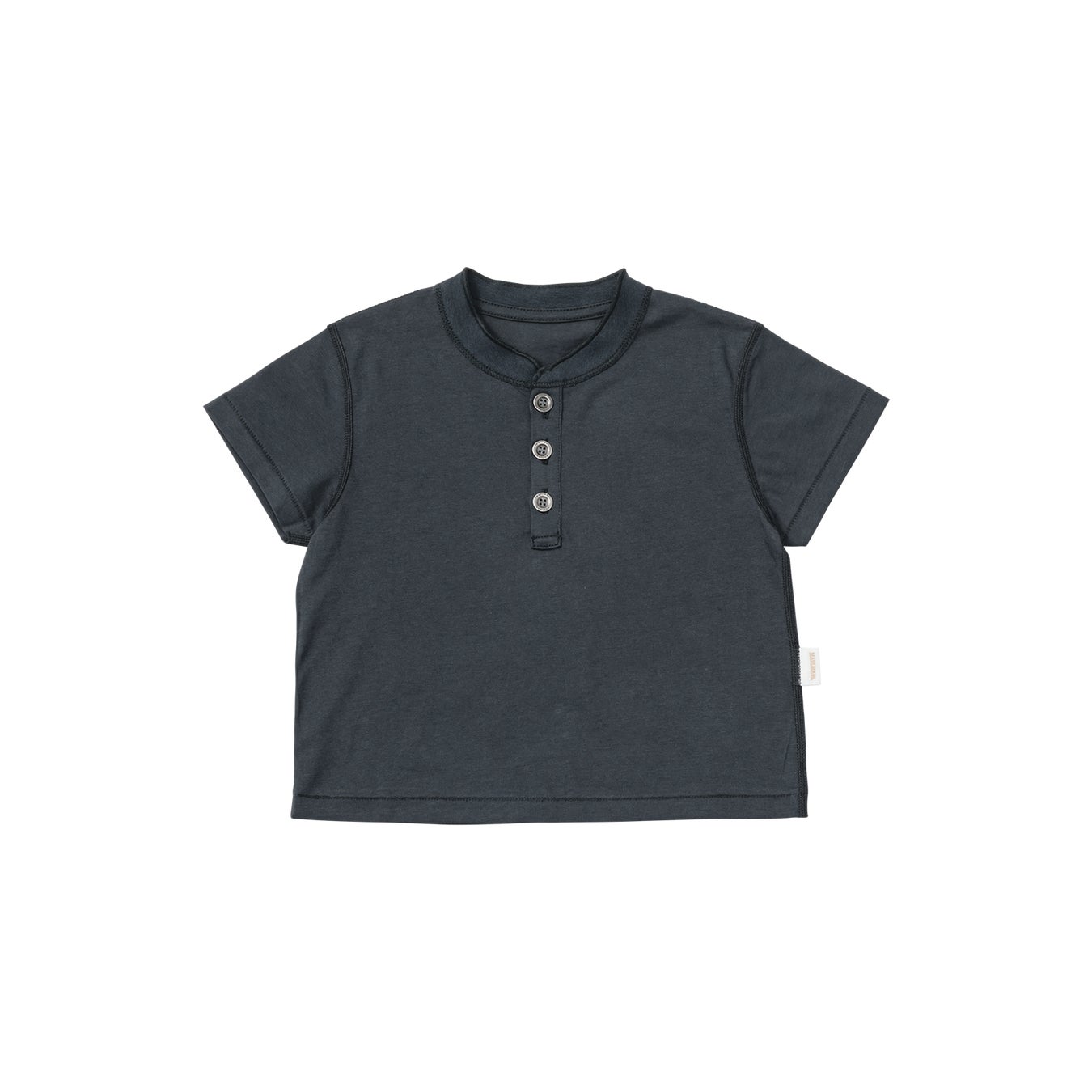 70cm-80cmはボディスーツ型。90cm-120cmはTシャツ型。“ラフ”さと“きちんと感”を備えた、ヘンリーネックのTシャツは、長く愛せる1枚に。