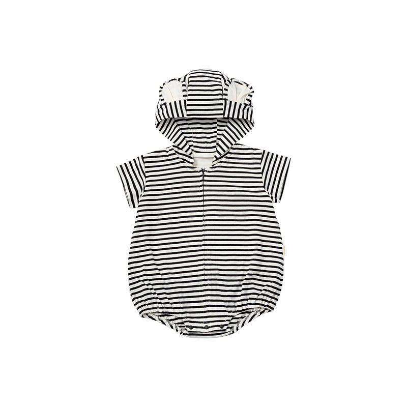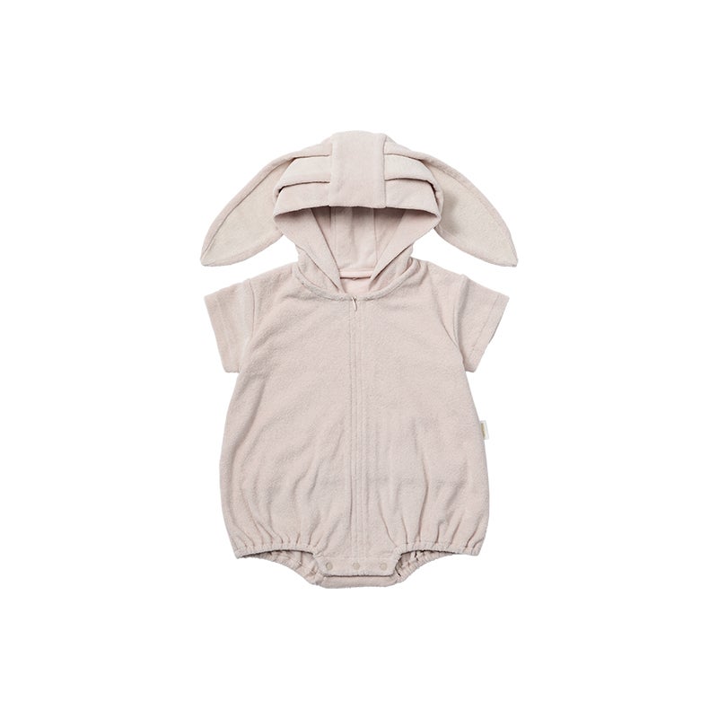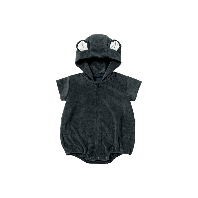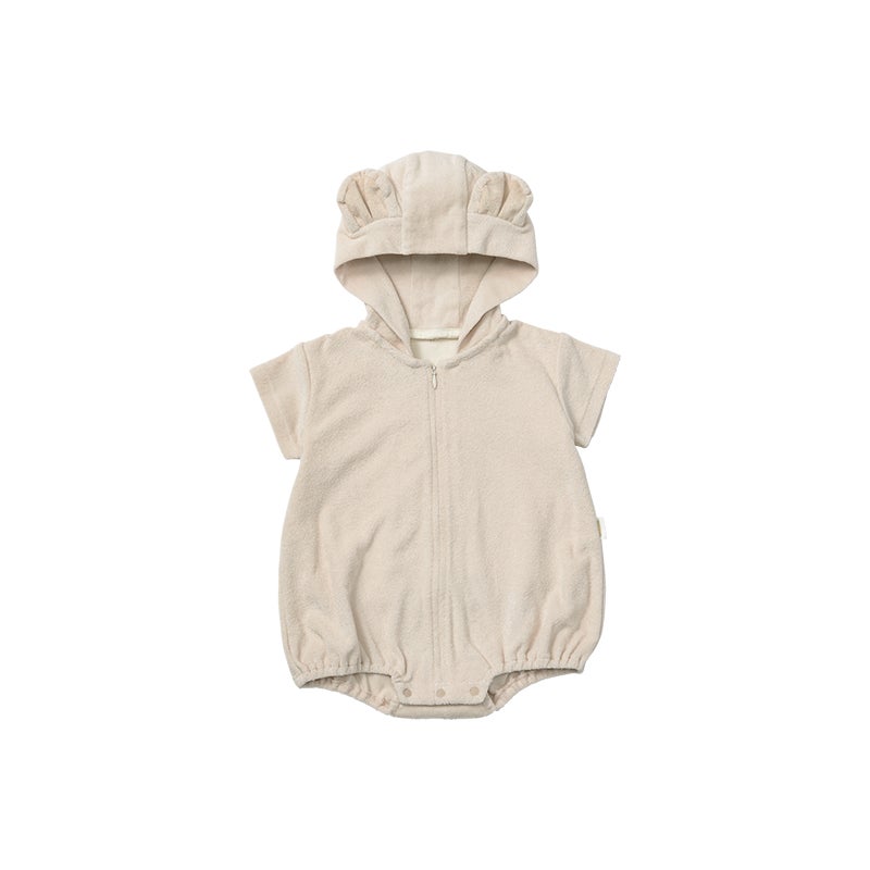 汗ばむ季節に嬉しい綿100%の生地で、フードは取り外しが可能です。そのままお出かけもできる、室内外兼用の1枚。