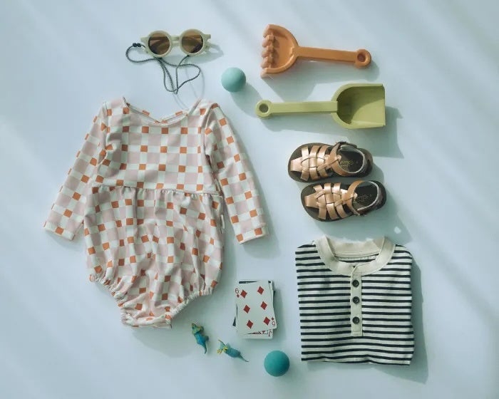 夏の恒例、限定色のスイムウエア。今年は水辺で映えるブロックチェック柄で、ペアレンツとのリンクコーデも楽しめます!