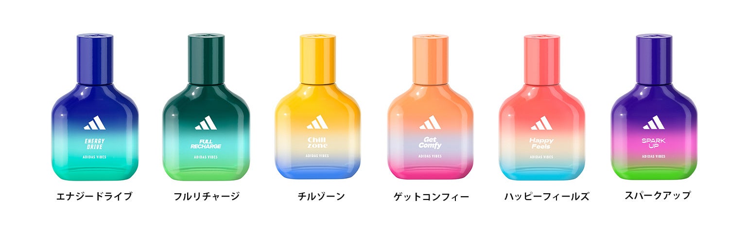 adidasより新たなムードフレグランス「Vibes」シリーズが登場。色鮮やかな6つの香りで毎日をポジティブムードに。