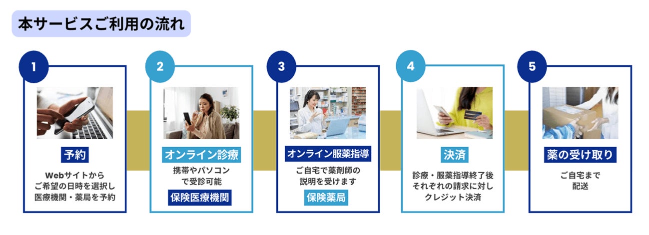 診察の予約から、ビデオ通話によるオンライン診療・服薬指導、クレジットカード決済、そして処方薬の配送まで、一連のプロセスをスマホひとつで完結。通院の負担を解消し、場所や時間に縛られない新しい医療体験を提供します。