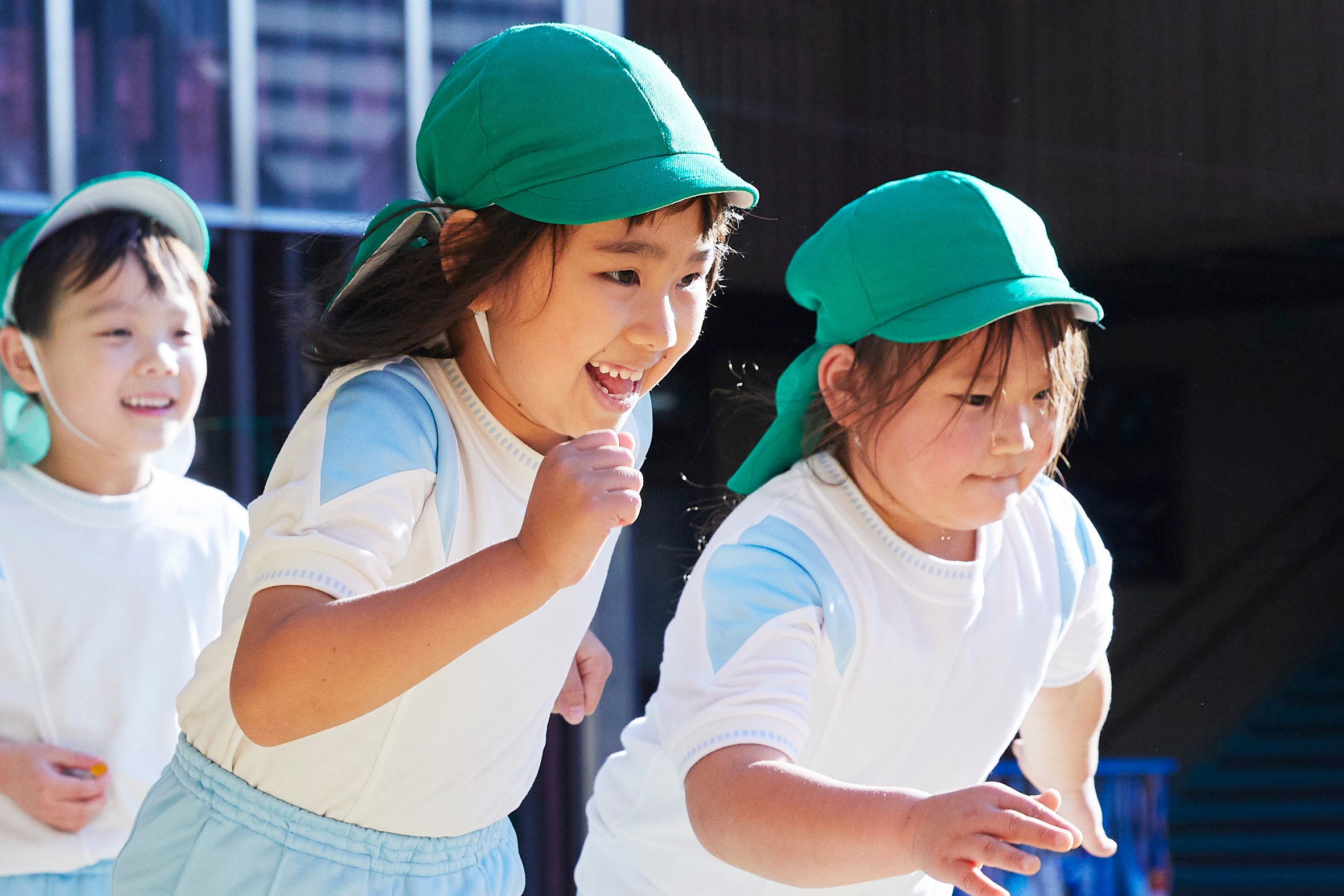 しっぽとりやリレーなど、お友だちと関わり合いながら楽しく運動遊びを行います。ルールを守って競い、話し合う中で、規律性や挑戦する気持ち、コミュニケーション能力や課題を発見する力を育みます。