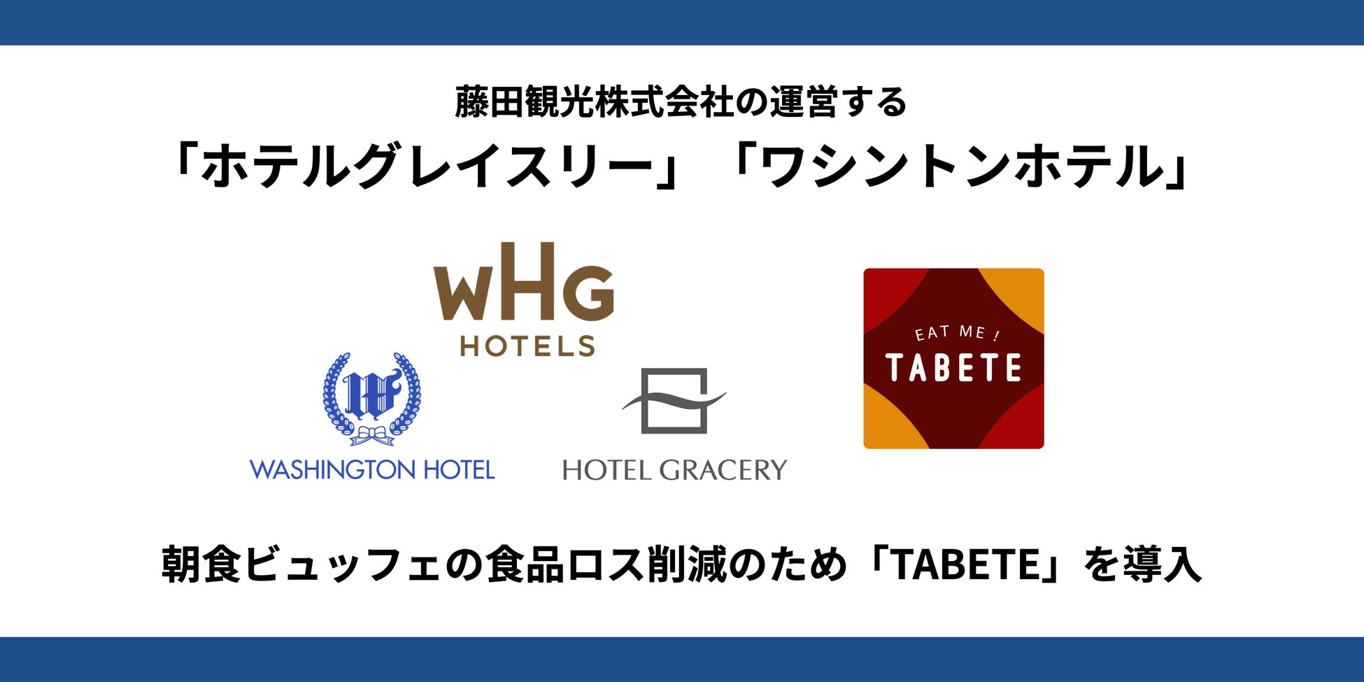 藤田観光株式会社が運営する『ホテルグレイスリー』『ワシントンホテル』がTABETEを導入。ホテルの朝食ブッフェにおける食品ロス削減を目指す。