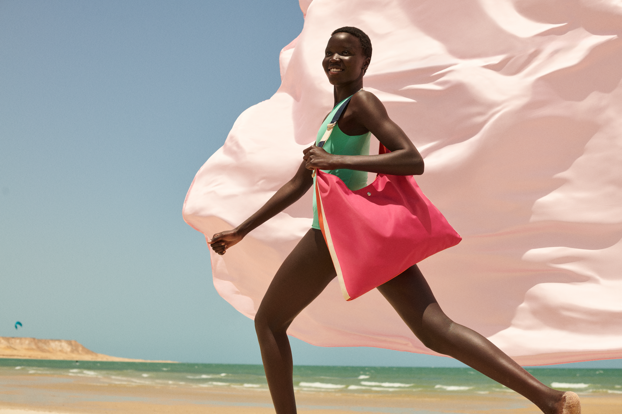 2022年に誕生した「リプレイ」は、メゾンの廃棄物と二酸化炭素排出量の削減を目指し、名のとおりアトリエに眠る余り素材を“再び”活用し、エナジーに満ち溢れるプレイフルなデザインによって“再び”価値を見出すコレクションです。ロンシャン2026年春夏コレクション「SLIDE IN STYLE」から、街を飛び出して眩い太陽の光と波しぶきを浴びる「CATCH THE PARISIAN WAVE」という物語にちなみ、「リプレイ」はサーフボードキャリーバッグに着想を得たビッグバッグへと装いを新たに登場いたします。耐久性に優れた端材によるツートーンのカラーブロッキングなボディと、アクセントカラーとなるストラップが生み出すユニークでリラクシーなフォルムのバッグは、ビーチや街へアクティブに繰り出す現代のパリジェンヌの気負わぬ相棒となります。