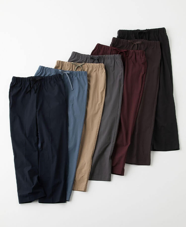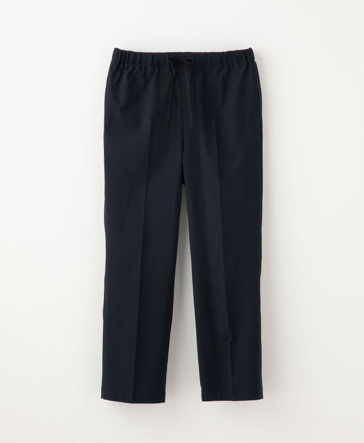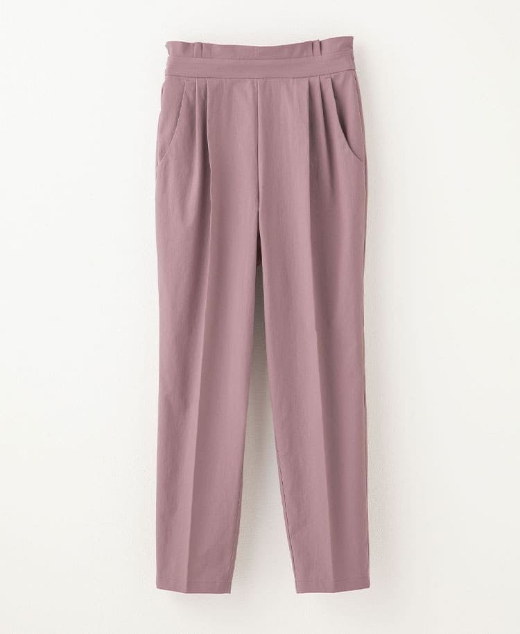 裾に向かって細くなるテーパードシルエットは脚を美しく見せます。腰まわりは動きやすさを考慮して、程よくゆとりがあるためアクティブなシーンに最適です。ウエスト部分にはデザインのアクセントとなるプリーツを施しました。