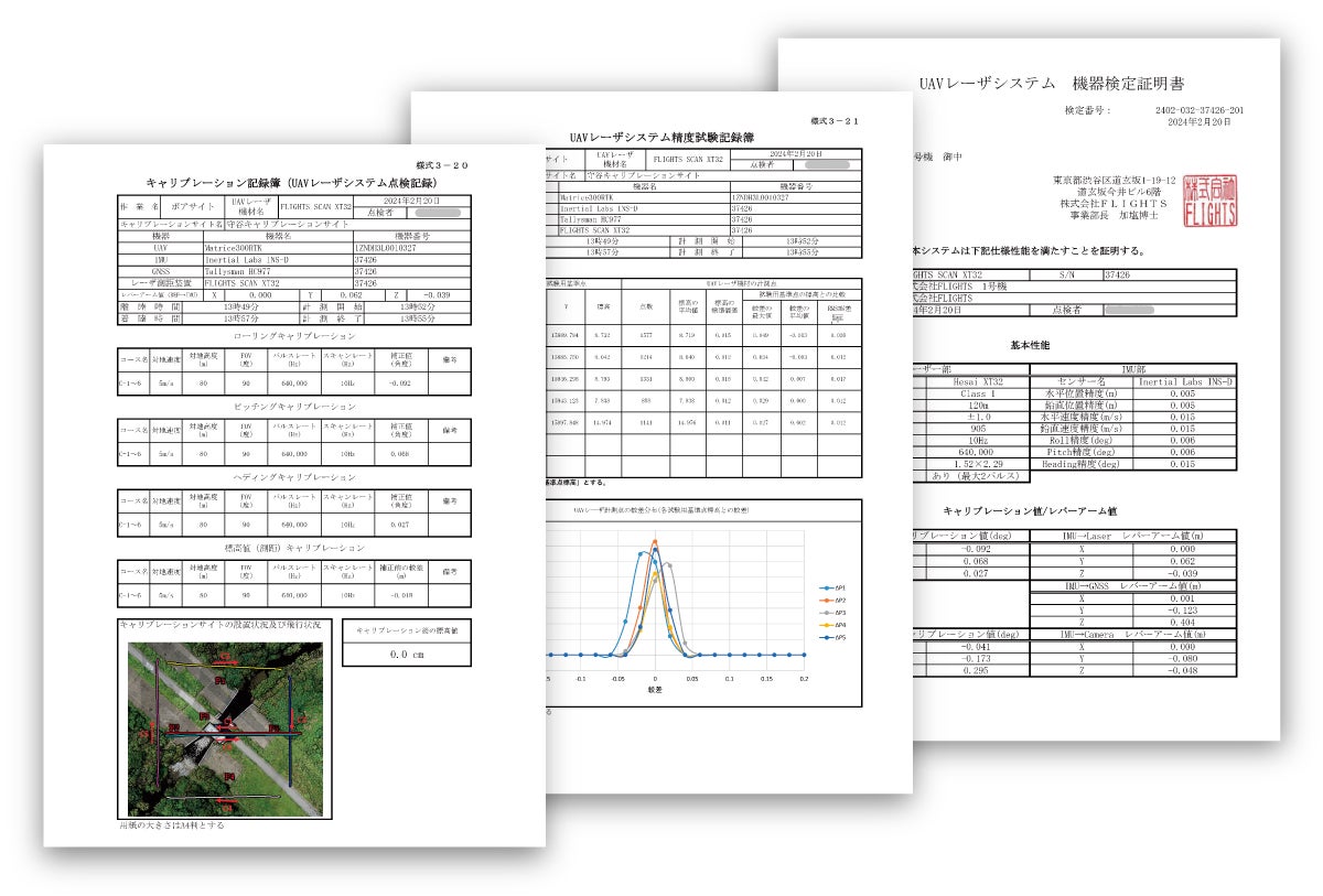 FLIGHTS PLANで作成した現場諸元、実際に飛行した際の飛行軌跡や点群データから、自動処理で一部様式の作成が可能です。