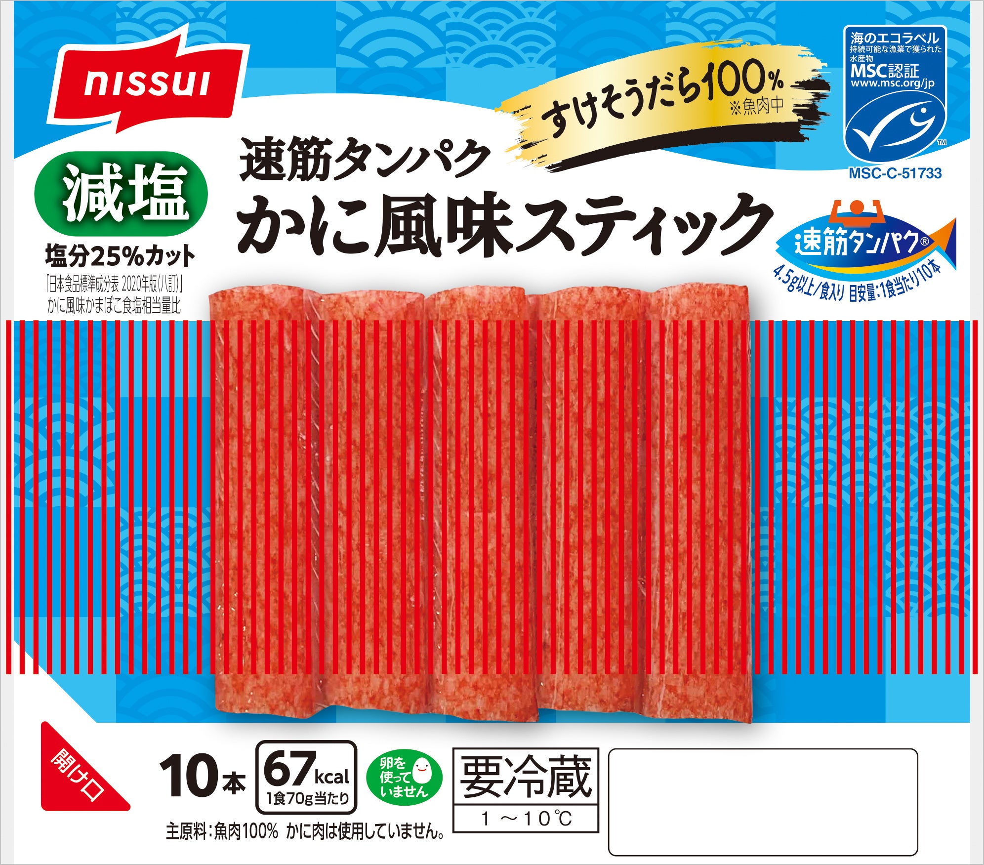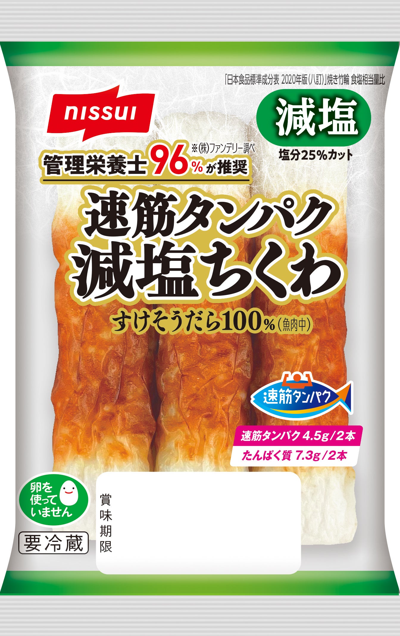 「速筋タンパク」シリーズは、1食分でスケソウダラのもつ良質なタンパク質の「速筋タンパク」が4.5g以上摂れる商品群として2020年3月に発売し、現在はちくわやフィッシュソーセージ・かに風味かまぼこなど、さまざまな商品を発売しています。