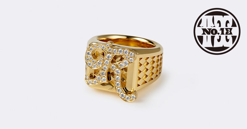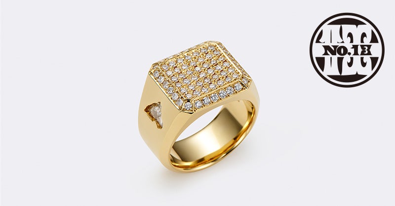 「No.13」の中で看板商品ともいえるイニシャルシリーズにビジュピコが新しいエッセンスを加えたことで、さらに洗練された立体感と圧倒的な存在感を放つ仕上がりとなりました。側面のひし形デザインにも注目です。