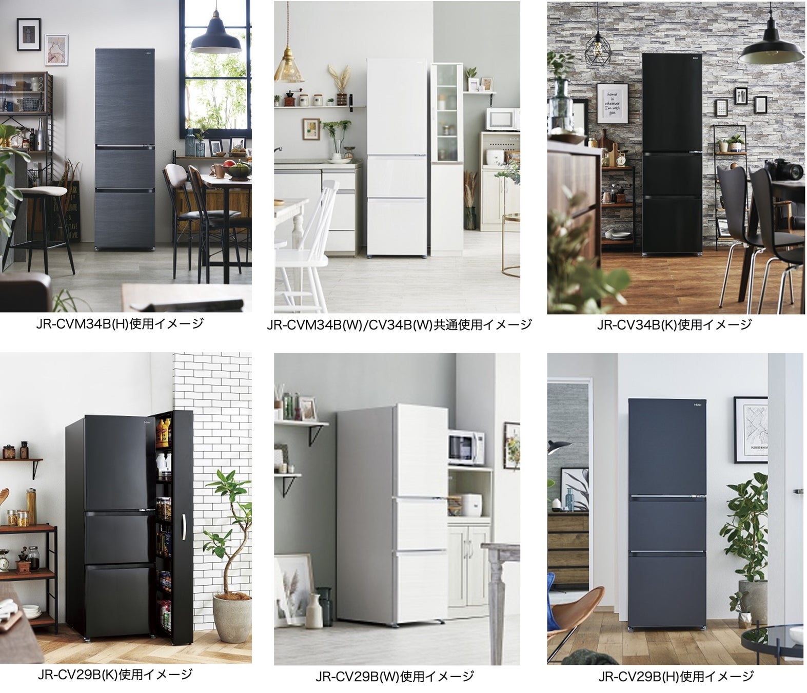 この度発売するSLIMOREは、“スリムボディに美味しさたっぷり。自分らしい毎日を楽しむ”をコンセプトに開発された製品です。幅54cmのスリムボディなのに大容量野菜室と変温可能なフレッシュルームを備えた3ドア冷凍冷蔵庫で、食品の鮮度を長持ちさせる機能性や野菜室の使い勝手、広さにこだわりました。新たにラインナップした自動製氷機能付きの335L冷凍冷蔵庫(JR-CVM34B)はリネンホワイトとギャラクシーグレーの2色展開、335L冷凍冷蔵庫(JR-CV34B)はリネンホワイトとチャコールブラックの2色展開、そして286L冷凍冷蔵庫(JR-CV29B)はリネンホワイトとチャコールブラック、マットグレーの3色展開と、豊富なカラーバリエーションで各ご家庭のキッチンに馴染む一台となります。