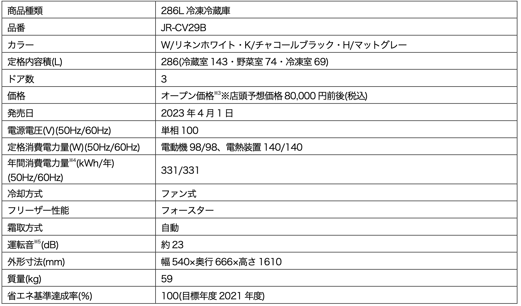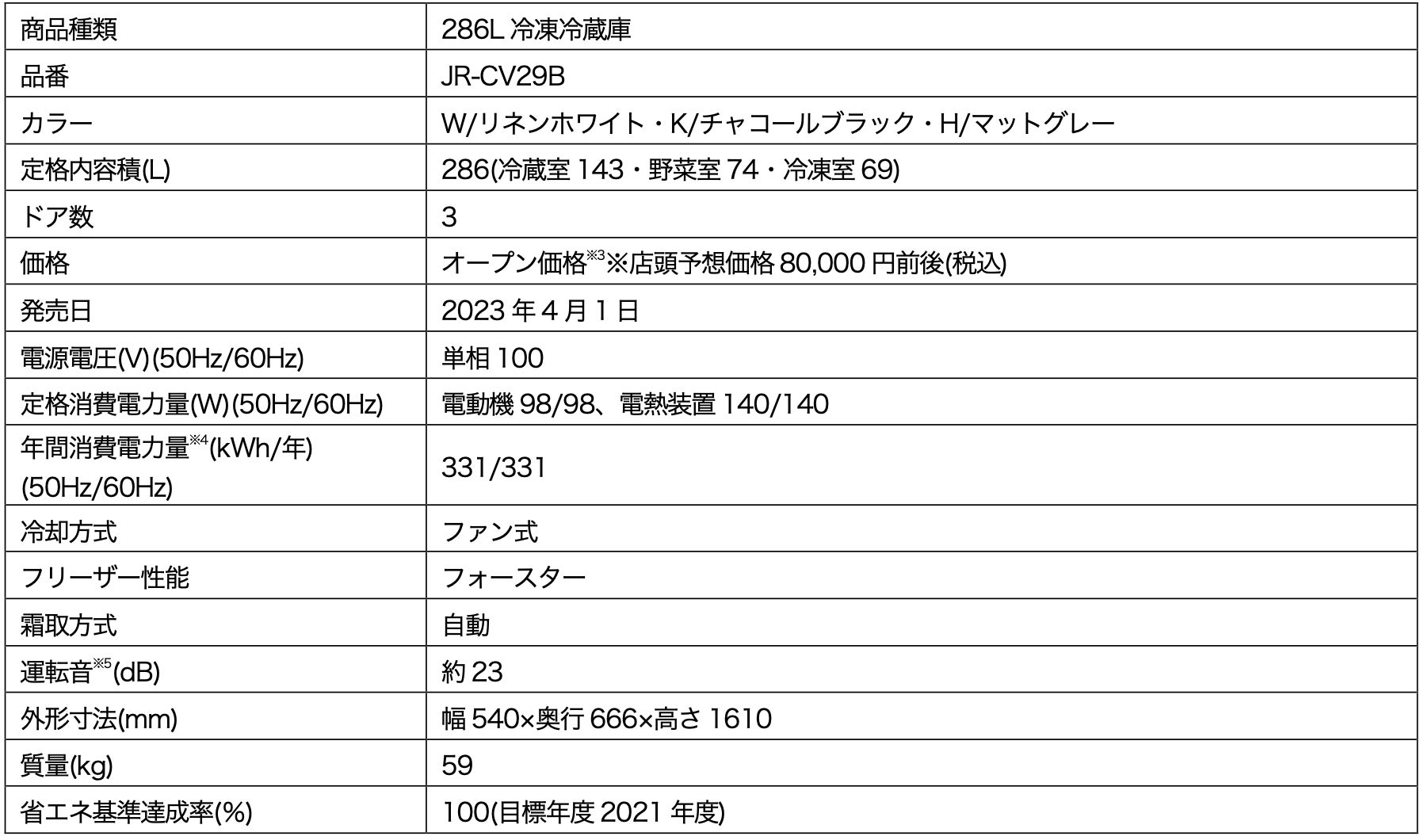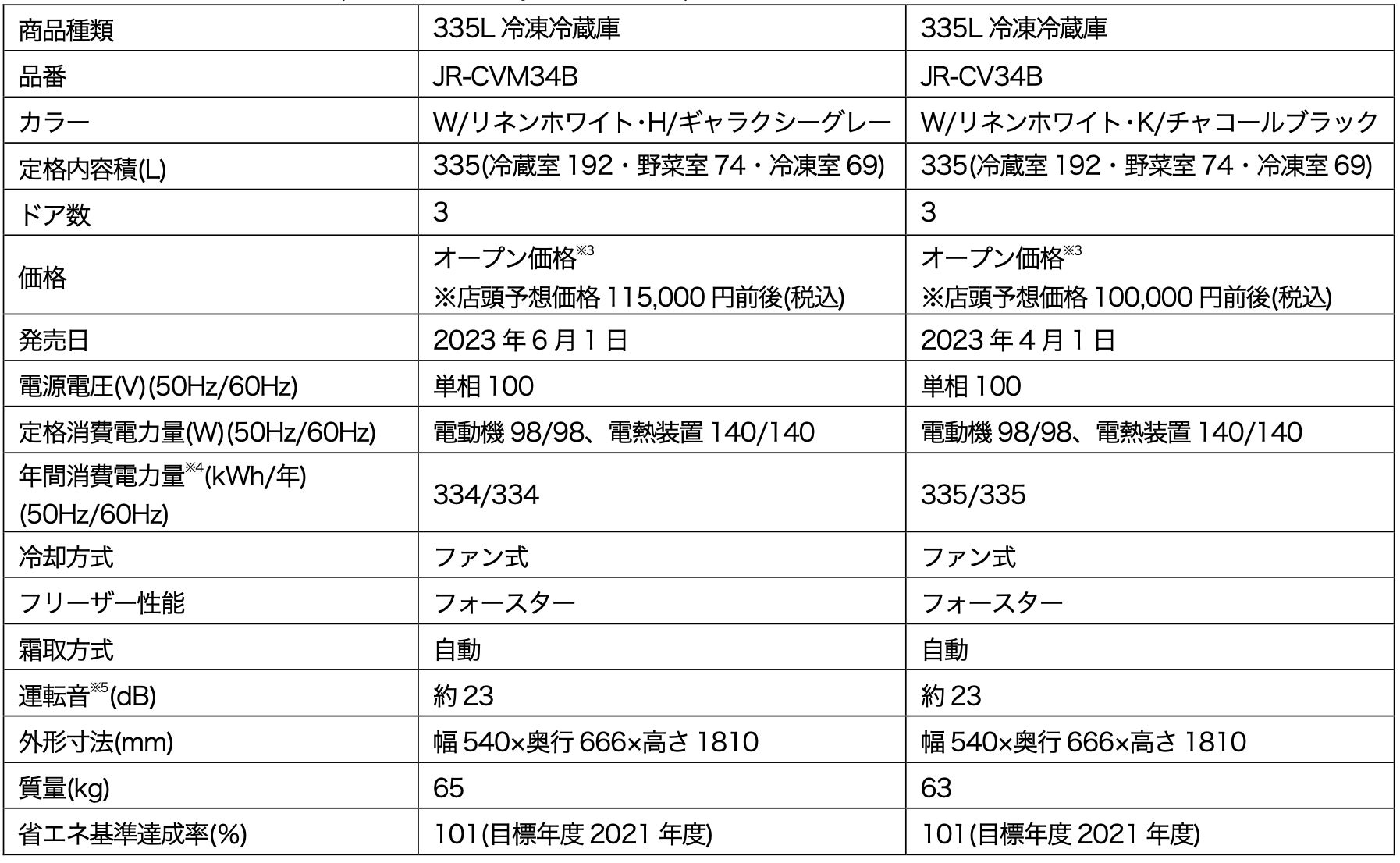 ハイアールジャパンセールス株式会社(本社:大阪市、代表取締役社長:杜 鏡国)は、スリムボディに大容量野菜室と変温可能なフレッシュルームを備えた3ドア冷凍冷蔵庫、335L冷凍冷蔵庫(JR-CV34B)・286L冷凍冷蔵庫(JR-CV29B)を2023年4月1日、335L冷凍冷蔵庫(JR-CVM34B)を2023年6月1日より全国の家電量販店、ホームセンター、GMS、WEB通販などで順次発売いたします。