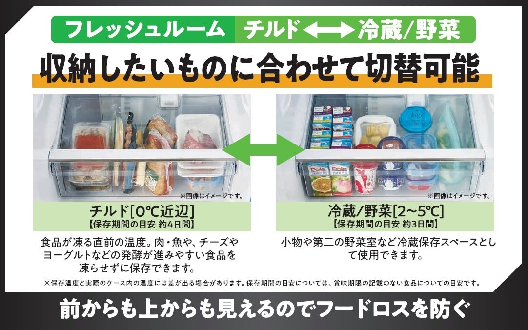 ■食材に合わせて変温可能なフレッシュルームは食品の鮮度を長持ちに!