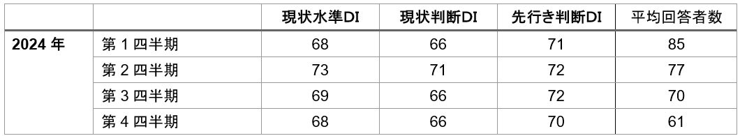 ・先行き判断DIは、前四半期差で-2ポイントの70と横ばいであった。