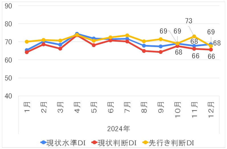 ・現状水準DIは、前四半期差で-1ポイントの68と横ばいであった。