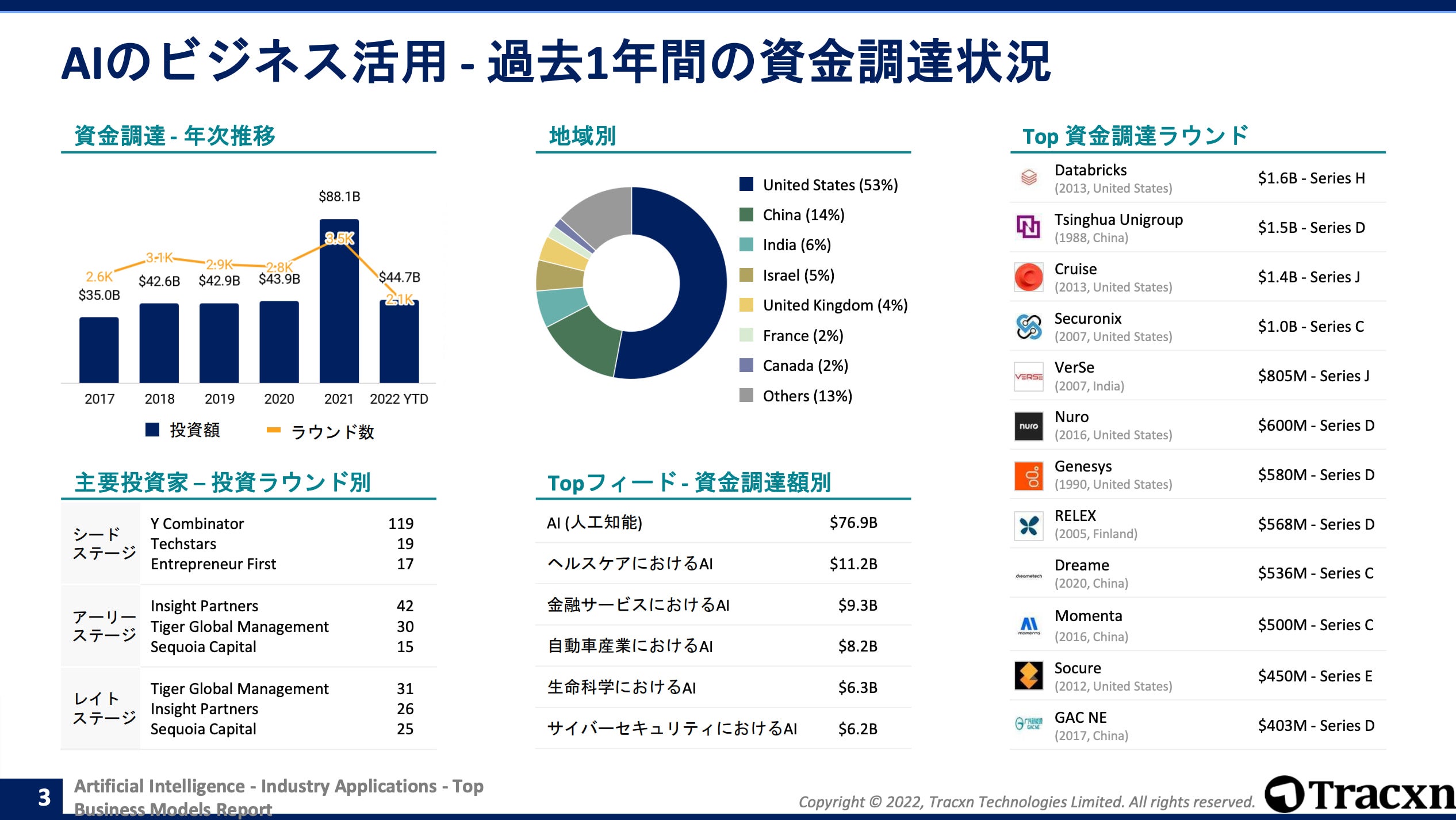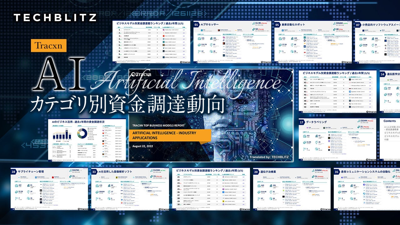 Tracxnとパートナーシップを結ぶTECHBLITZは今回、「AI カテゴリ別資金調達動向」を日本語版でリリースいたしました。