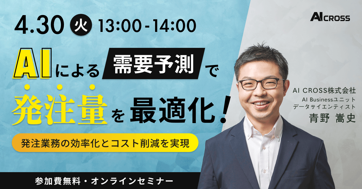 データサイエンティストによる無料オンラインセミナー「AIによる需要予測で発注量を最適化! 発注業務の効率化とコスト削減を実現」を2024年4月30日(火)13時より開催