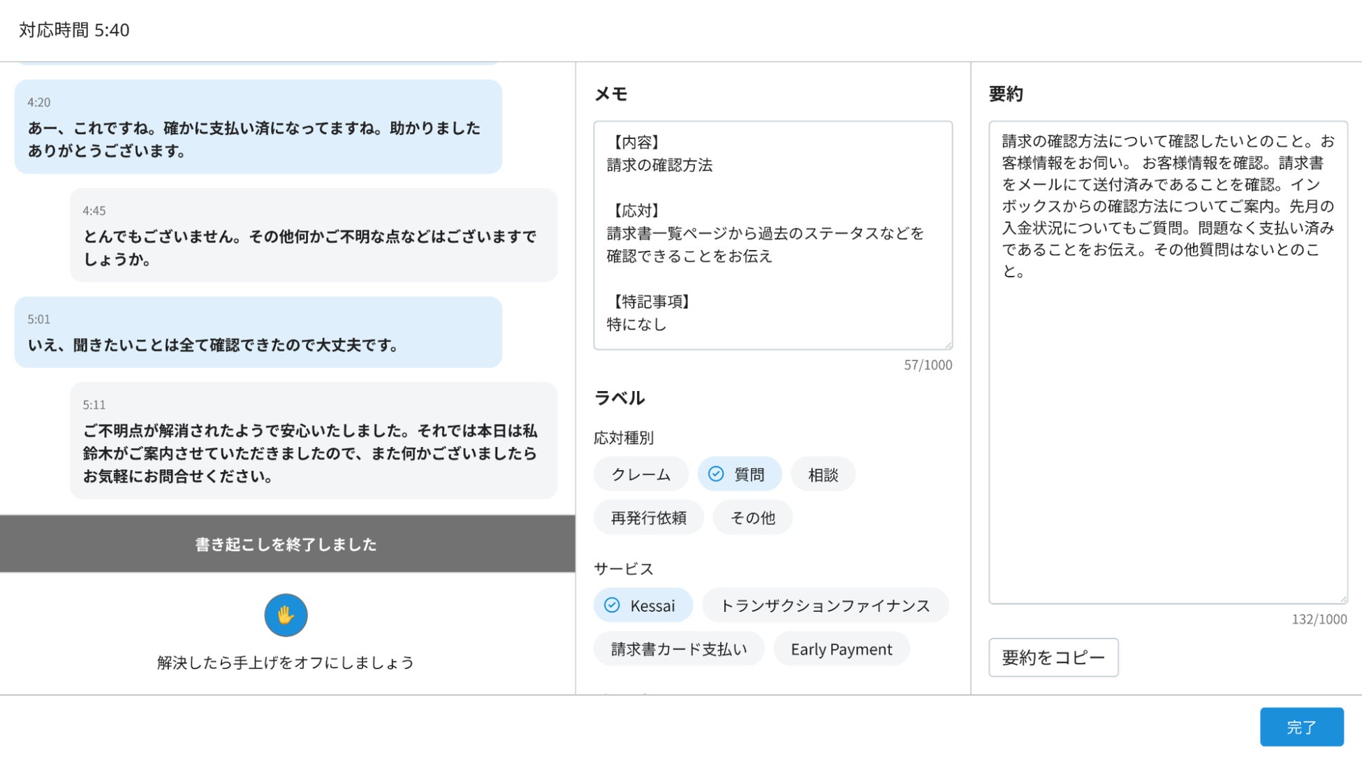 生成型音声要約により後処理時間を最小限に抑える仕組みを構築、安心して働ける環境の実現によりオペレーターの定着率向上を目指す
