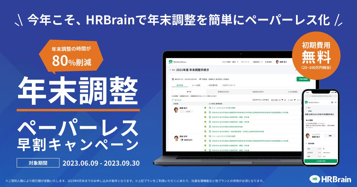 HRBrain、「年末調整ペーパーレス早割キャンペーン」を実施!