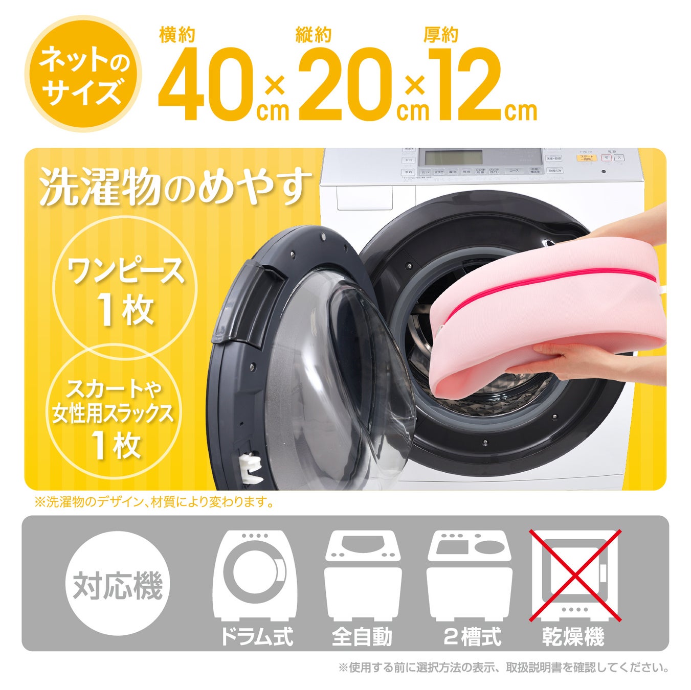 対応洗濯機 : ドラム式、縦型 ※乾燥機・乾燥モードは不可