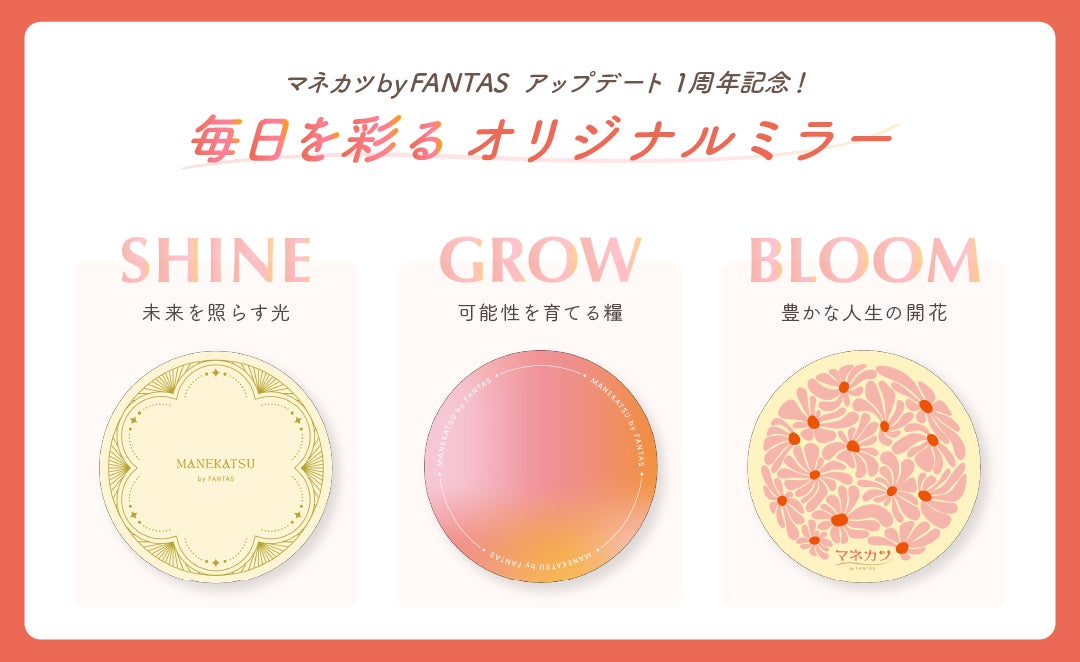 1周年を記念し、マネカツに関わる皆さまの毎日がより輝くことを願って制作した「マネカツ オリジナルミラー」を、今後開催されるイベントにてプレゼントいたします。