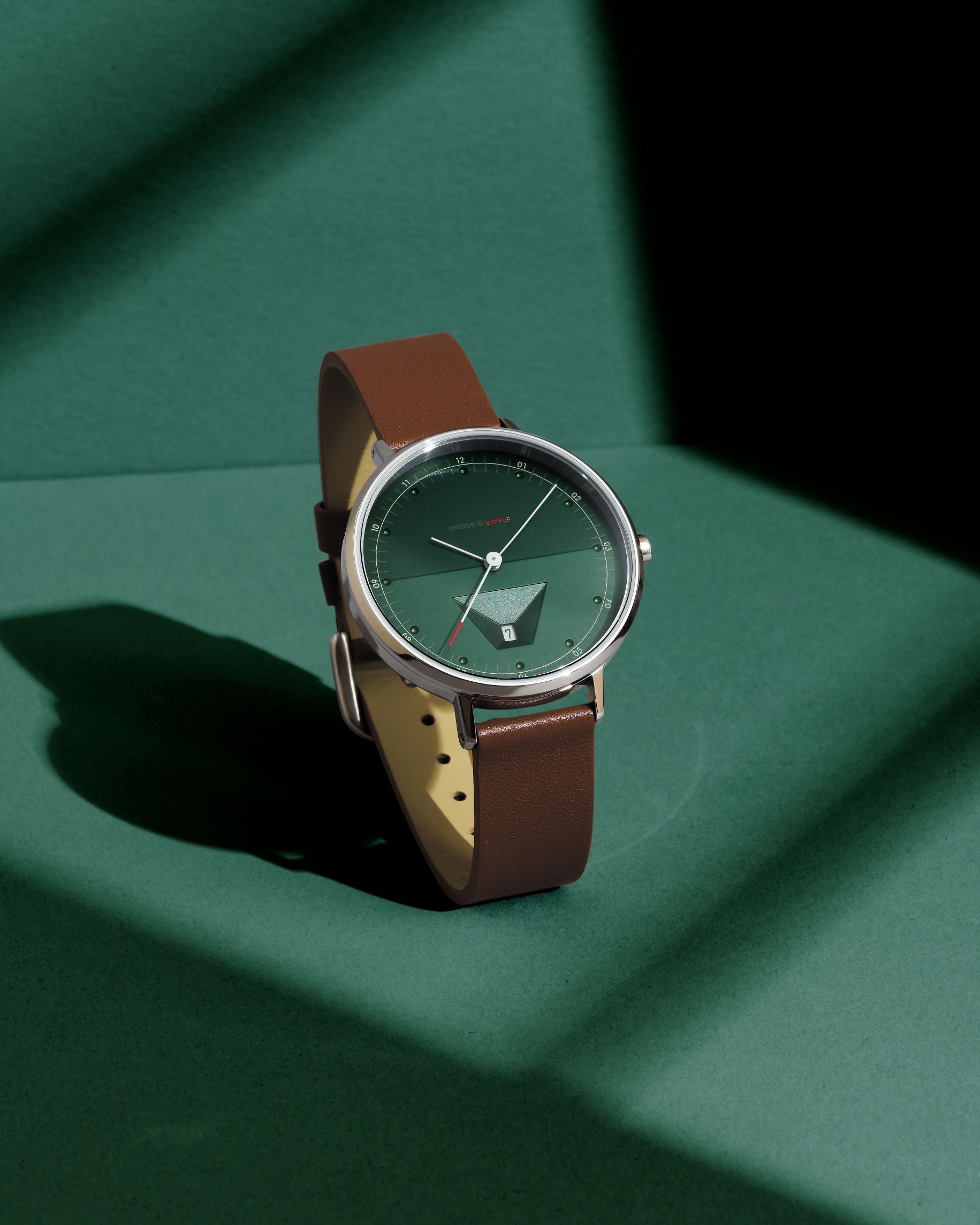 日常の中にある光りはその色、強さ、影、かたちなどによってその表情を変化させ、私たちは時の経過を感じることができます。移ろいゆく光とそこから生まれる影が織りなす表情は、とどまることなく刻々と変化し、時を刻み続けます。時計の文字盤の傾斜によって、作り出される色味の変化は、その瞬間にしか味わえない時を表現し、日常に寄り添い心を豊かにするようなデザインに仕上がっています。
