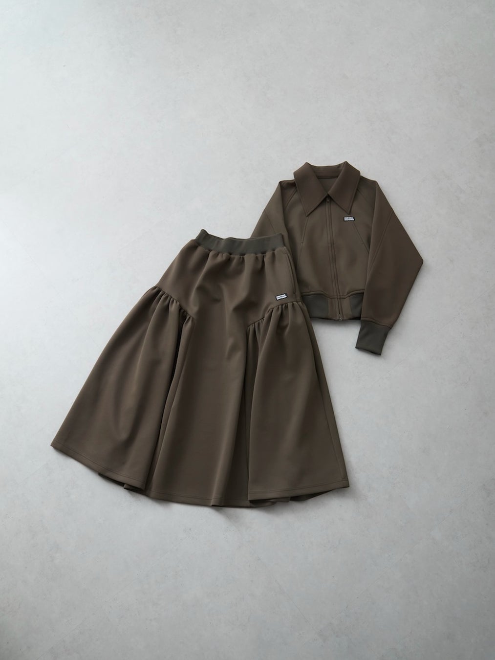 先行販売商品:track candy jacket、track candy skirt(カーキ)