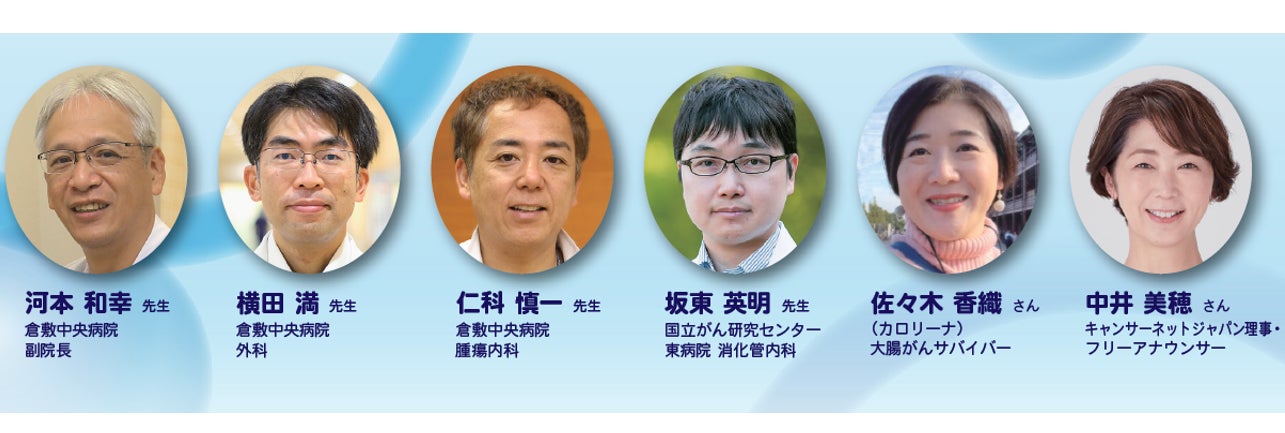 大腸がんは男女合わせると最も罹患数の多いがん*2です。直腸がんは大腸がんの中でも肛門に近い直腸にできるがんで、最近10年で年間罹患者は1.3倍に増えています*3。しかし、治療の進歩には目を見張るものがあり、手術・薬物療法は大きく変遷し、機能を残す治療へシフトしてきています。このセミナーでは倉敷中央病院の横田満先生、仁科慎一先生より直腸がんの手術、薬物療法についてわかりやすく解説していただきます。また基調講演として、国立がん研究センター東病院の坂東英明先生をお招きしご講演いただきます。さらに直腸がん患者であり、YouTubeで積極的にご自身の体験を発信している佐々木香織(カロリーナ)さんからは、排便障害やストーマに関する体験談をお話しいただきます。
