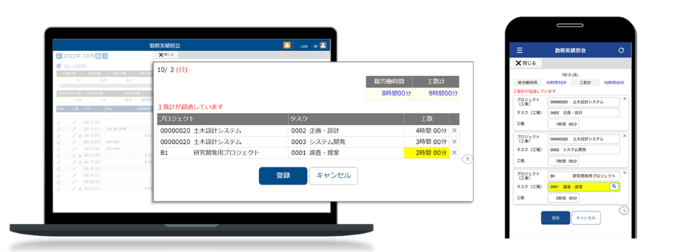 1. PC・スマートフォンを使ったかんたん工数入力で入力忘れを防止!