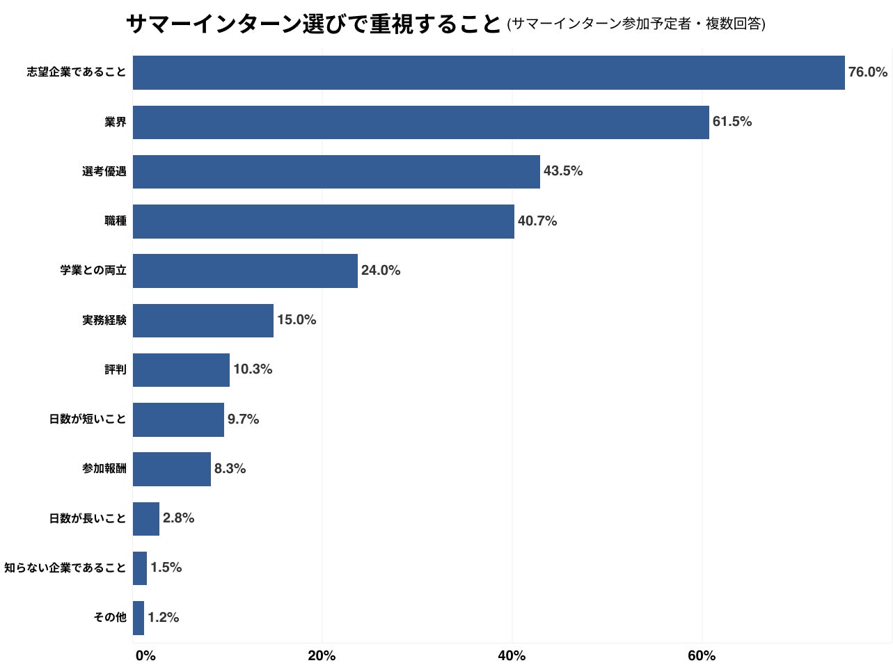 サマーインターン選びでの重視点は「選考優遇」も4割超、内定獲得への強い意識がうかがえる