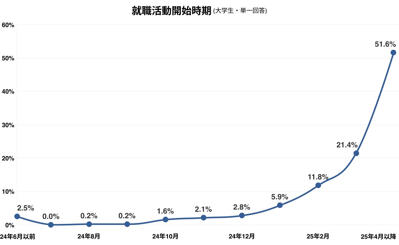 就職活動開始時期は3年生4月以降に急上昇。早期就活が本格化