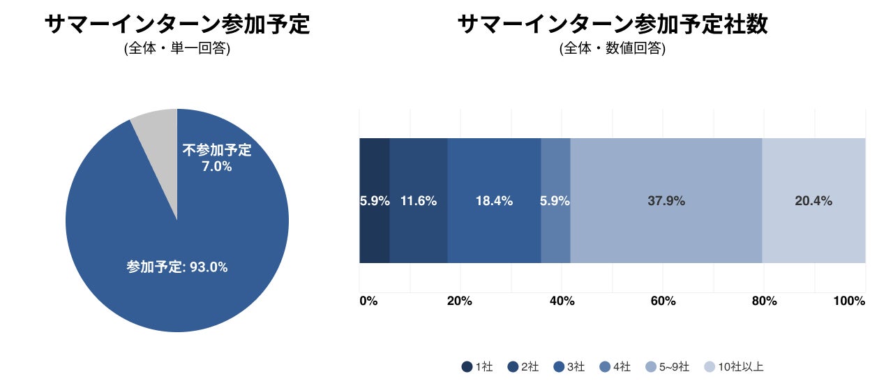 サマーインターン参加予定者は9割超、平均参加予定数は5.6社と早期活動の核に