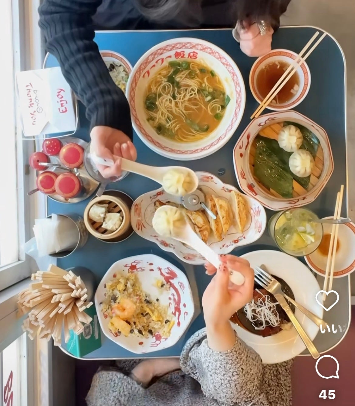 中華酒場『フーフー飯店』で頭上の荷物置き場に携帯を置いて真上から撮影する今までにない新鮮フォトがかわいすぎるとTikTokで大バズり!「若者の街」というイメージがあまりない東京・錦糸町にお店があるにも関わらずZ世代を中心に連日行列の絶えない大ヒットを飛ばしています。写真だけではなくメニューのお味が美味しい点も人気です。