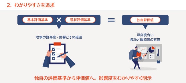 脆弱性レポートはセキュリティ用語が多く、内容を理解することが難しいものであることがほとんどです。セキュサポの脆弱性診断サービスは、CVSS v3.0をベースにした独自の評価基準を用いることで、脆弱性情報とその影響度、対策方法まで、わかりやすいレポートを作成します。