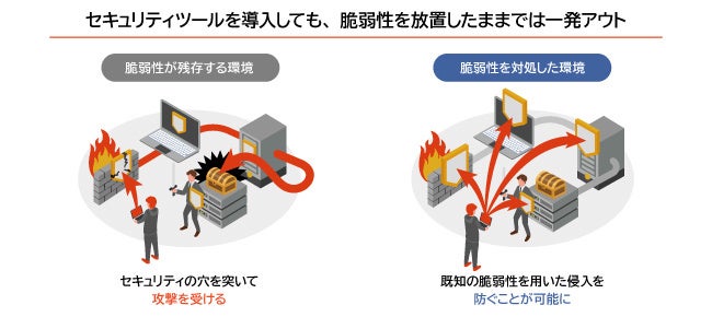 - セキュリティ対策ツールを導入しても、脆弱性があれば攻撃を防ぐことは困難