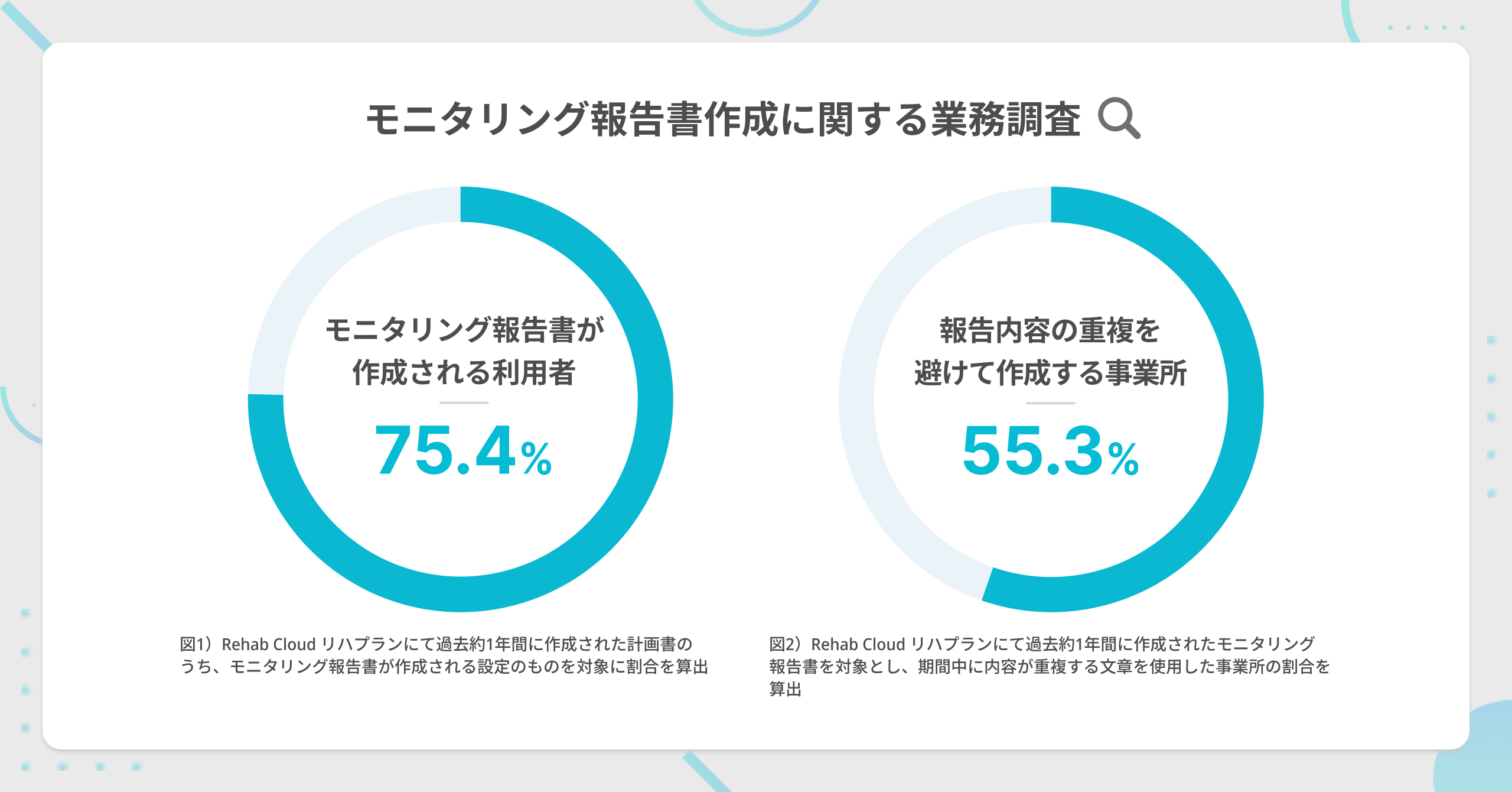それでも、多くの事業所がモニタリングを重要視し、提出義務の無い利用者様もいる中で約75%の利用者様の報告書が作成されています。(図1)