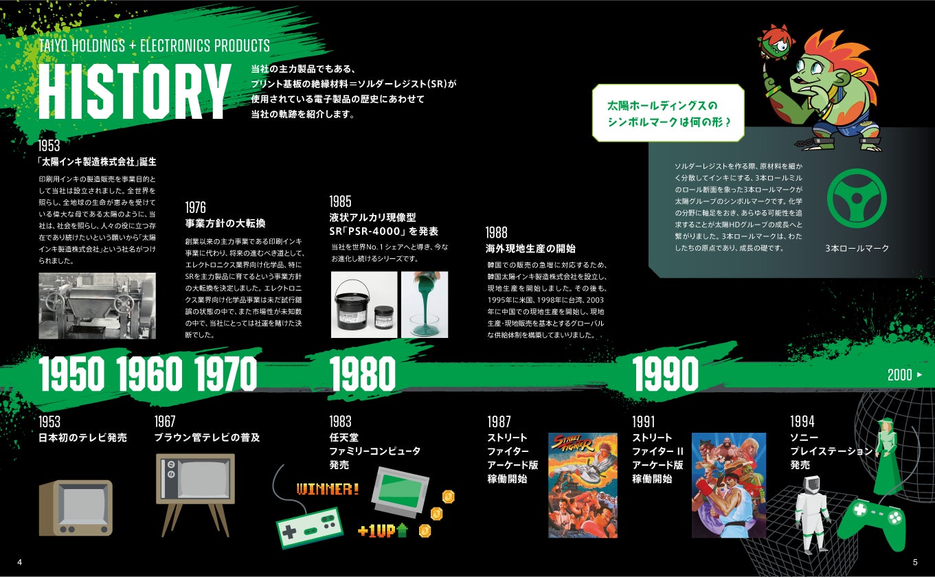 ブース来場者には、ゲームの取扱説明書をイメージした「太陽ホールディングス取扱説明書」を無料配布いたします。太陽ホールディングスの歴史をはじめ、主力事業や製品について記載しています。
