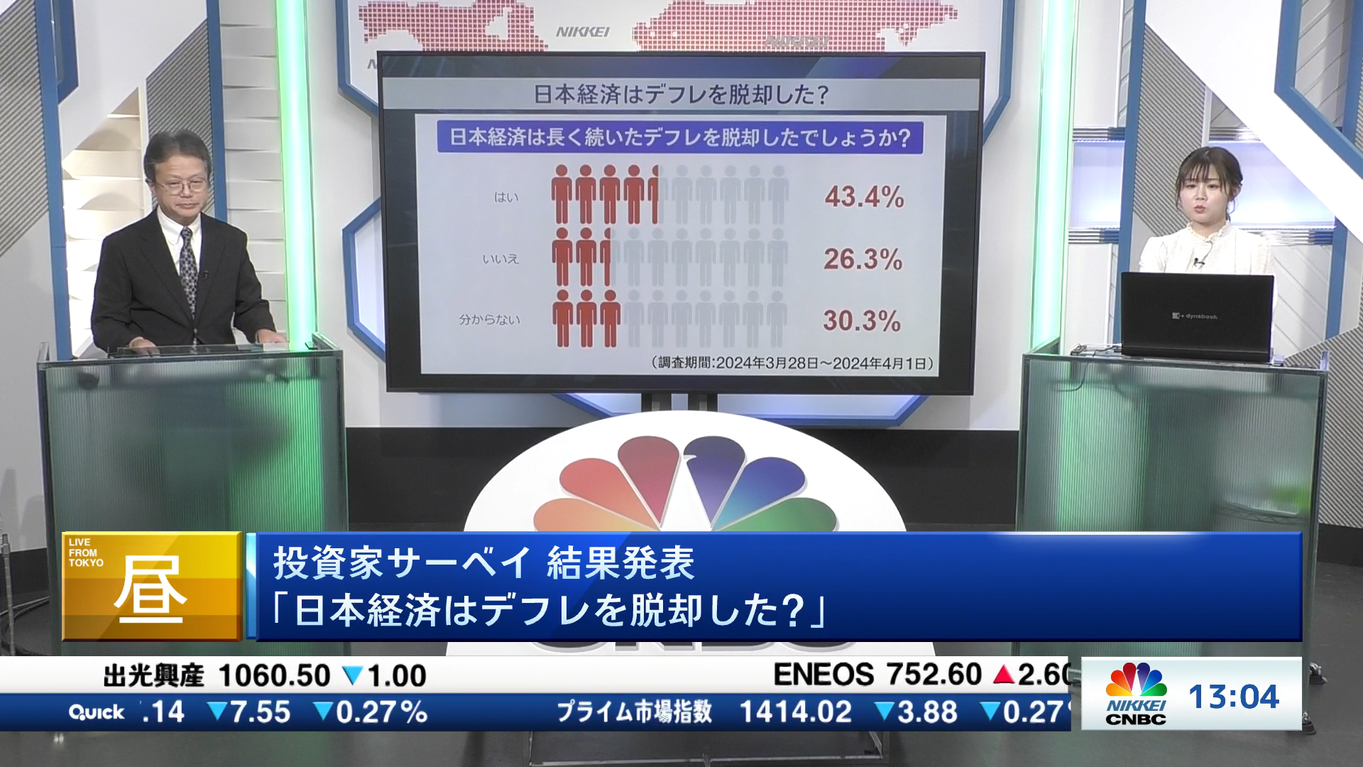 「ある程度予想はしていたが、視聴者、投資家の見方は分かれた。自分自身、日本経済がデフレを脱却してよい方向に向かってほしいと考えてはいるが、脱却と言い切ってよいか、躊躇するところもある。景気があまりよくならず、停滞している中で物価が上がり続ける、スタグフレーションのような状態に陥ってしまう危険性もある」