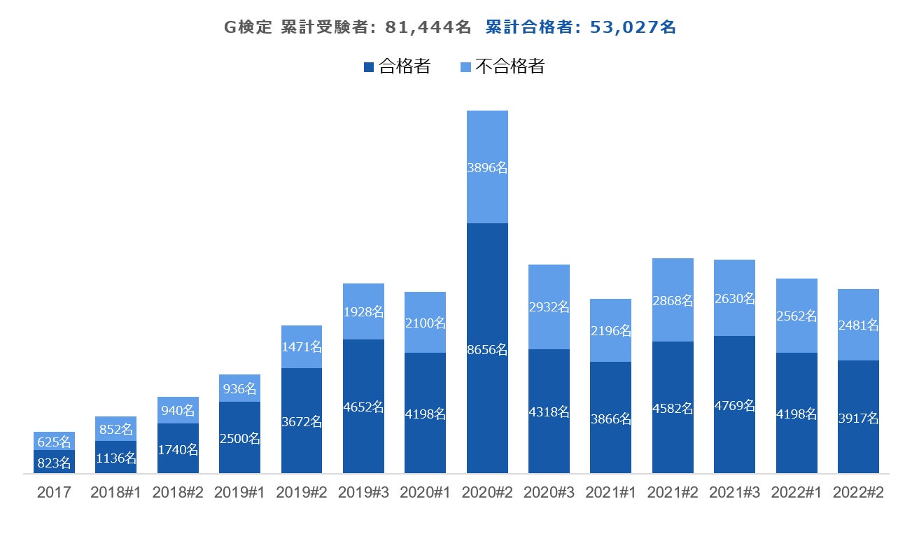 これにより、G検定の累計受験者数は81,444名、累計合格者数は53,027名になりました。